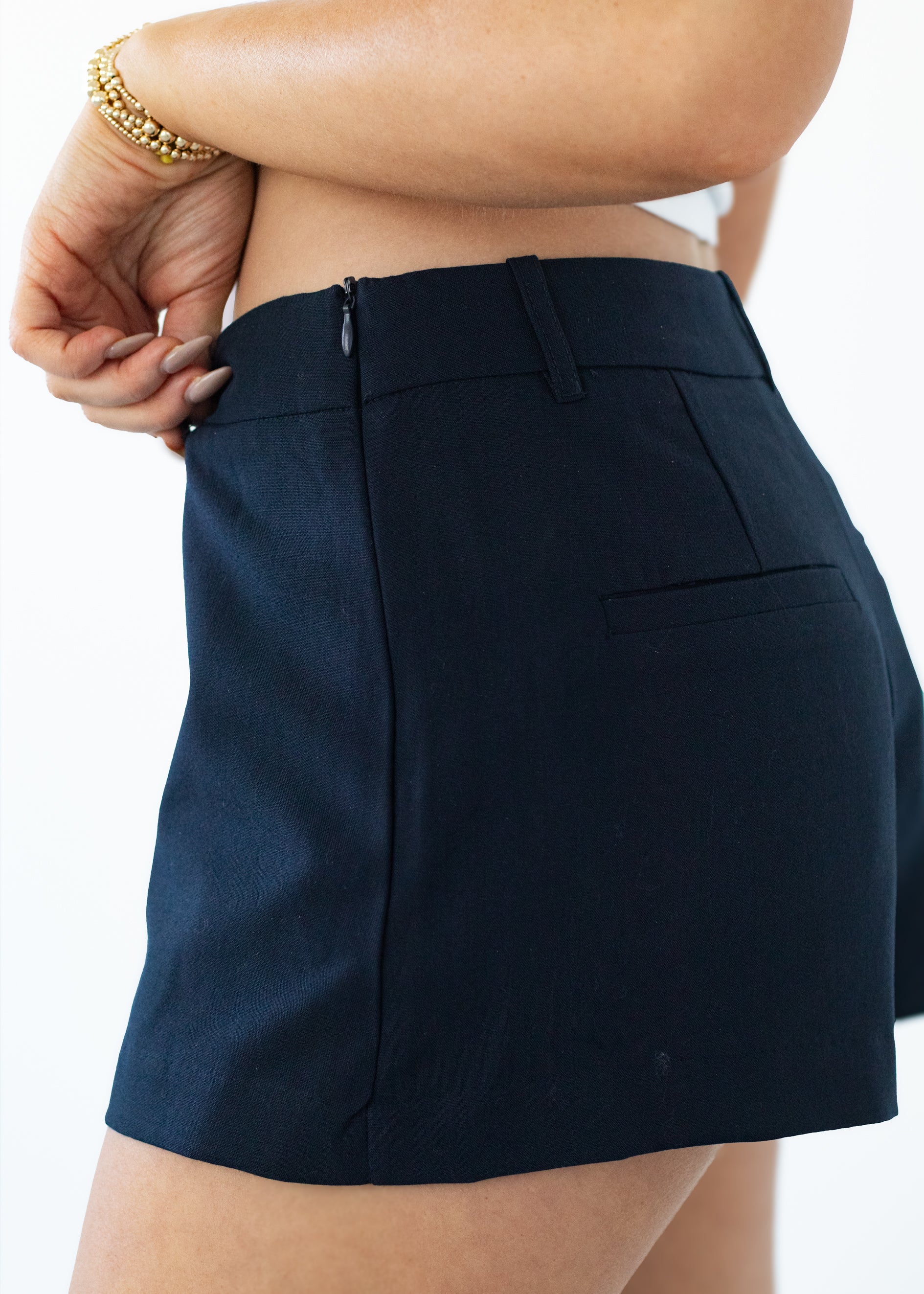Meet your new go-to mini. The NIA Ariel Skort blends the flirty look of a skirt with the comfort and confidence of built-in shorts. Crafted in a classic navy hue, this mini skort features a sleek, structured silhouette that sits high on the waist for a flattering fit. Designed for effortless styling, it pairs perfectly with the matching NIA Grand Top for a chic, put-together set.