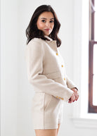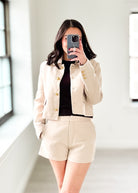 Meet the Uptown Shorts—your elevated neutral staple designed for chic, modern styling. Tailored with a clean, structured fit, these high-waisted shorts feature a smooth front, subtle texture, and a flattering silhouette that transitions effortlessly from day to night. Pair them with the matching Uptown Cropped Jacket for a sophisticated coordinated set, or style them with knits and blouses for endless versatility. Refined, timeless, and effortlessly polished—these shorts bring an uptown elegance to any outfit.