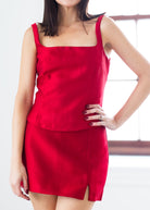 Our new Amanda Uprichard Dale Skort in the perfect shade of scarlet merges the playful charm of a mini skirt with the comfort and practicality of shorts. In a bold red hue, it offers a chic, versatile look that’s perfect for day-to-night wear, keeping you stylish and confident wherever you go. Pair it with our Jacksonville Top for the cutest set!