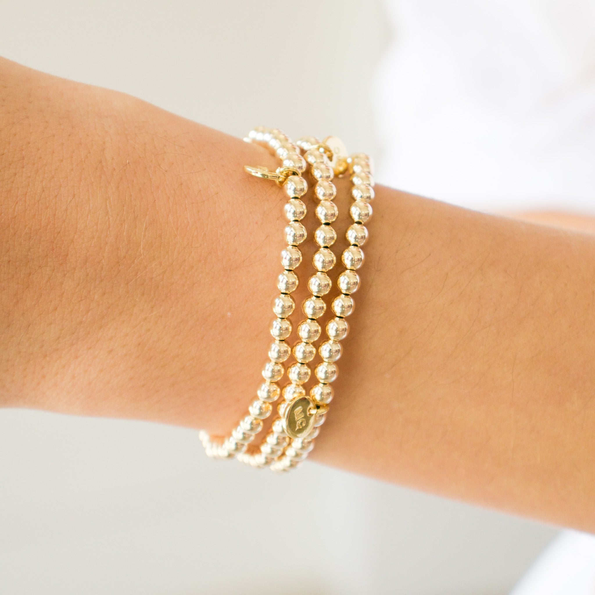 Our Stacked By MAC Bracelets are made of hollow gold filled beads, so they keep their color while at the same time are comfortable and lightweight. They are also waterproof and sweat proof, and come with a lifetime warranty.