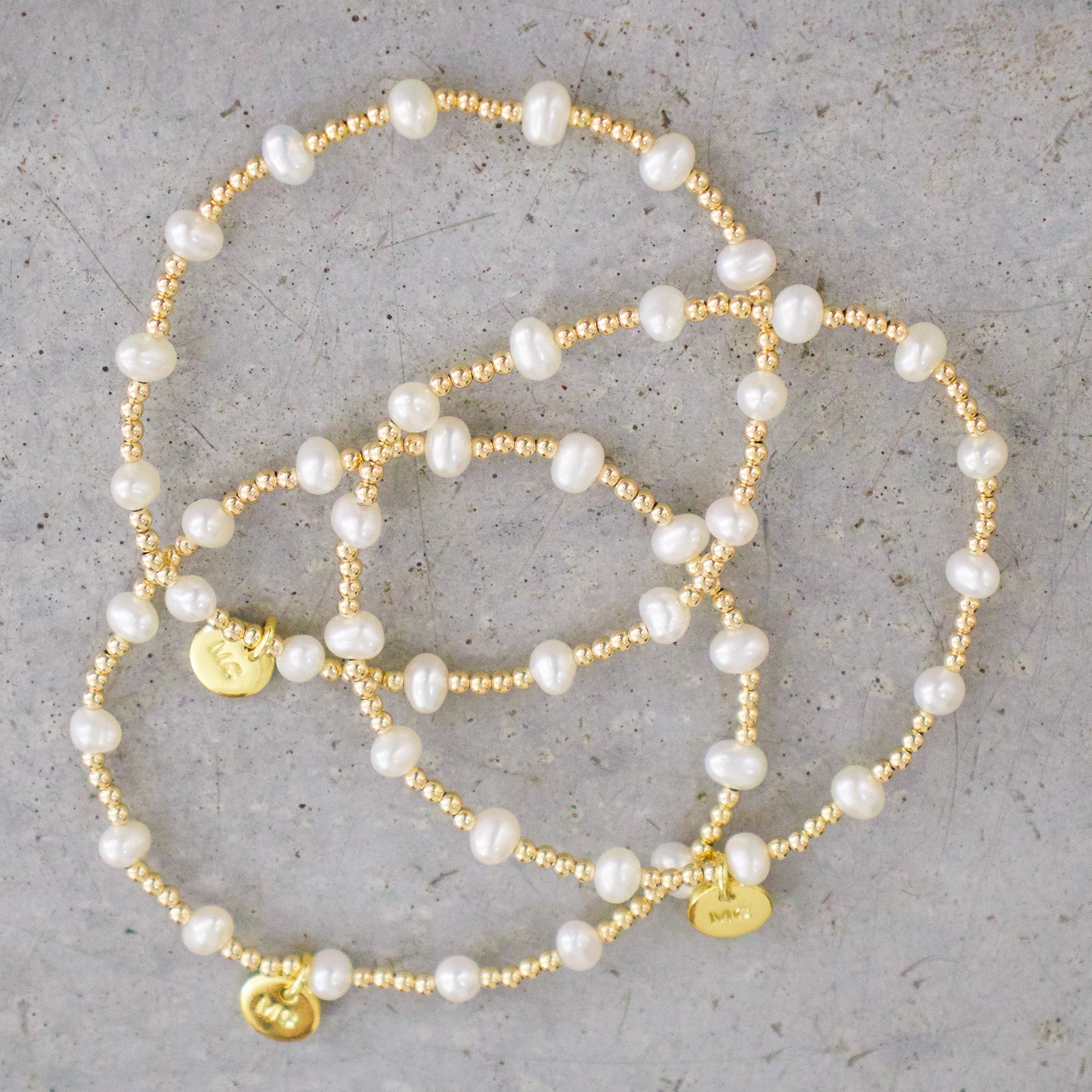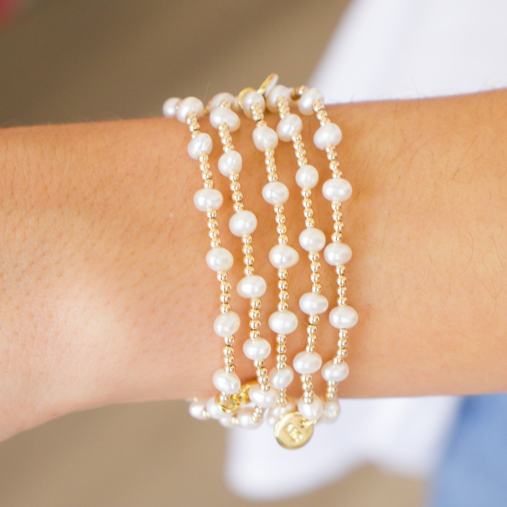Kerry Bracelet: 2MM gold beads with 4MM pearls.