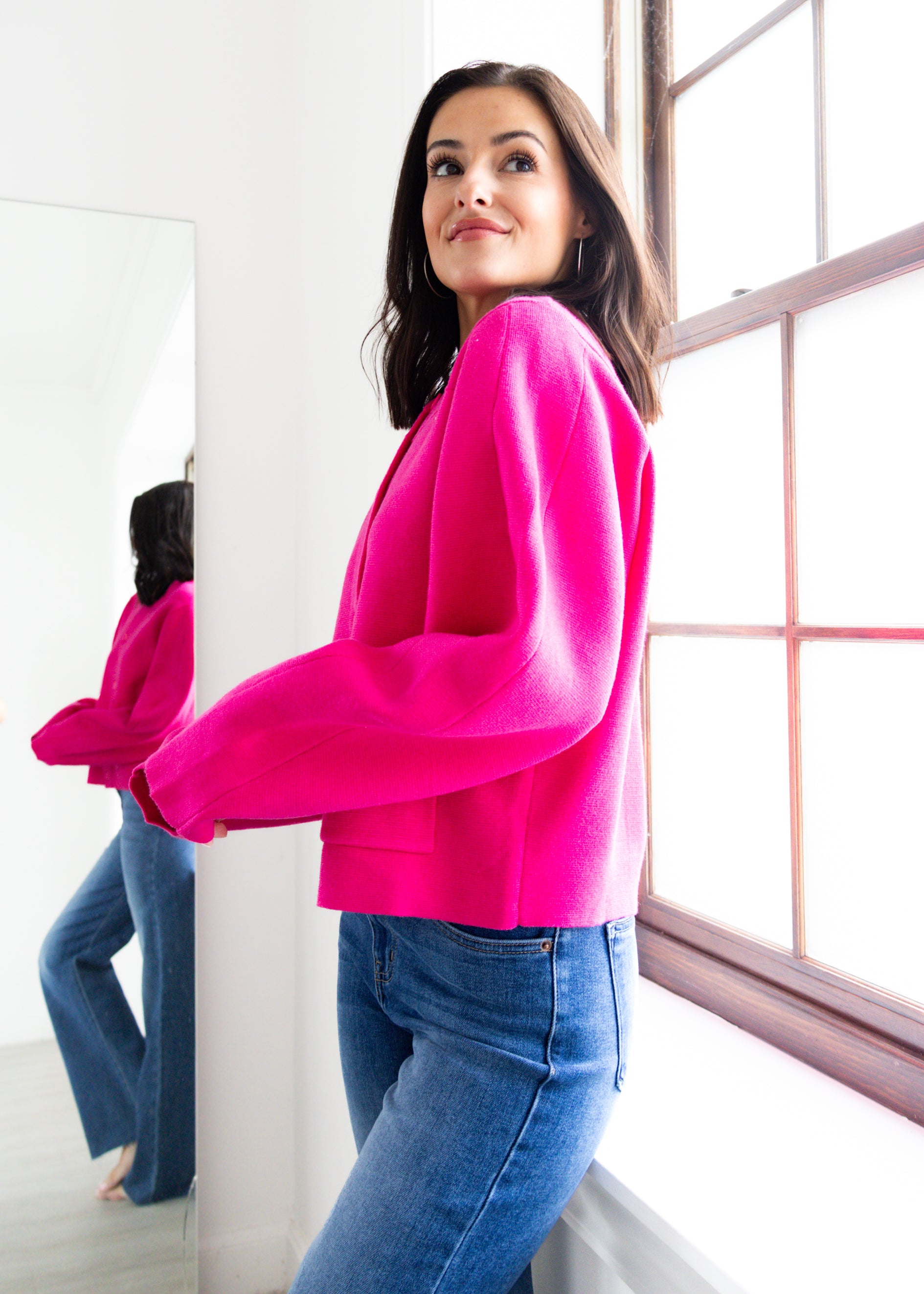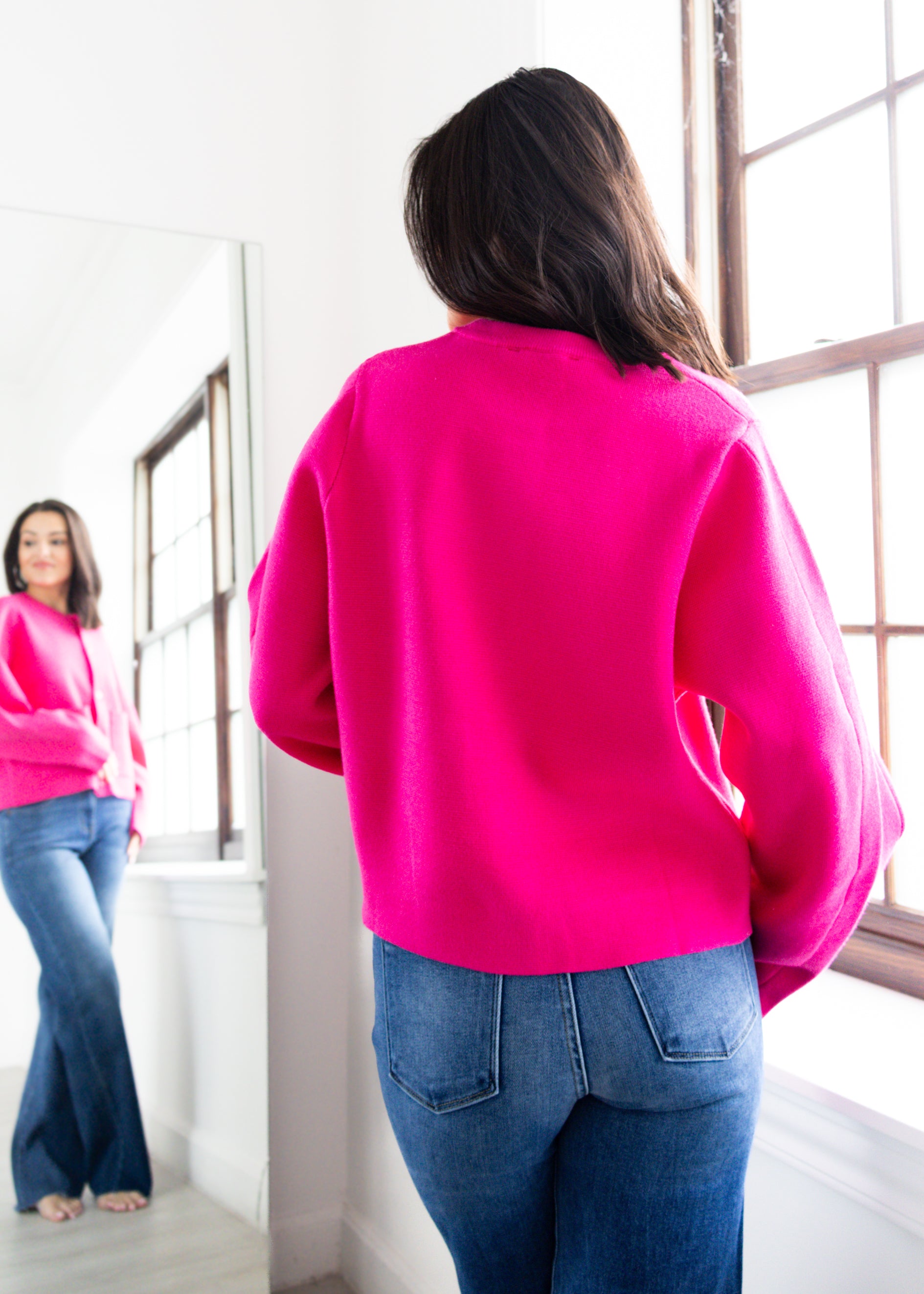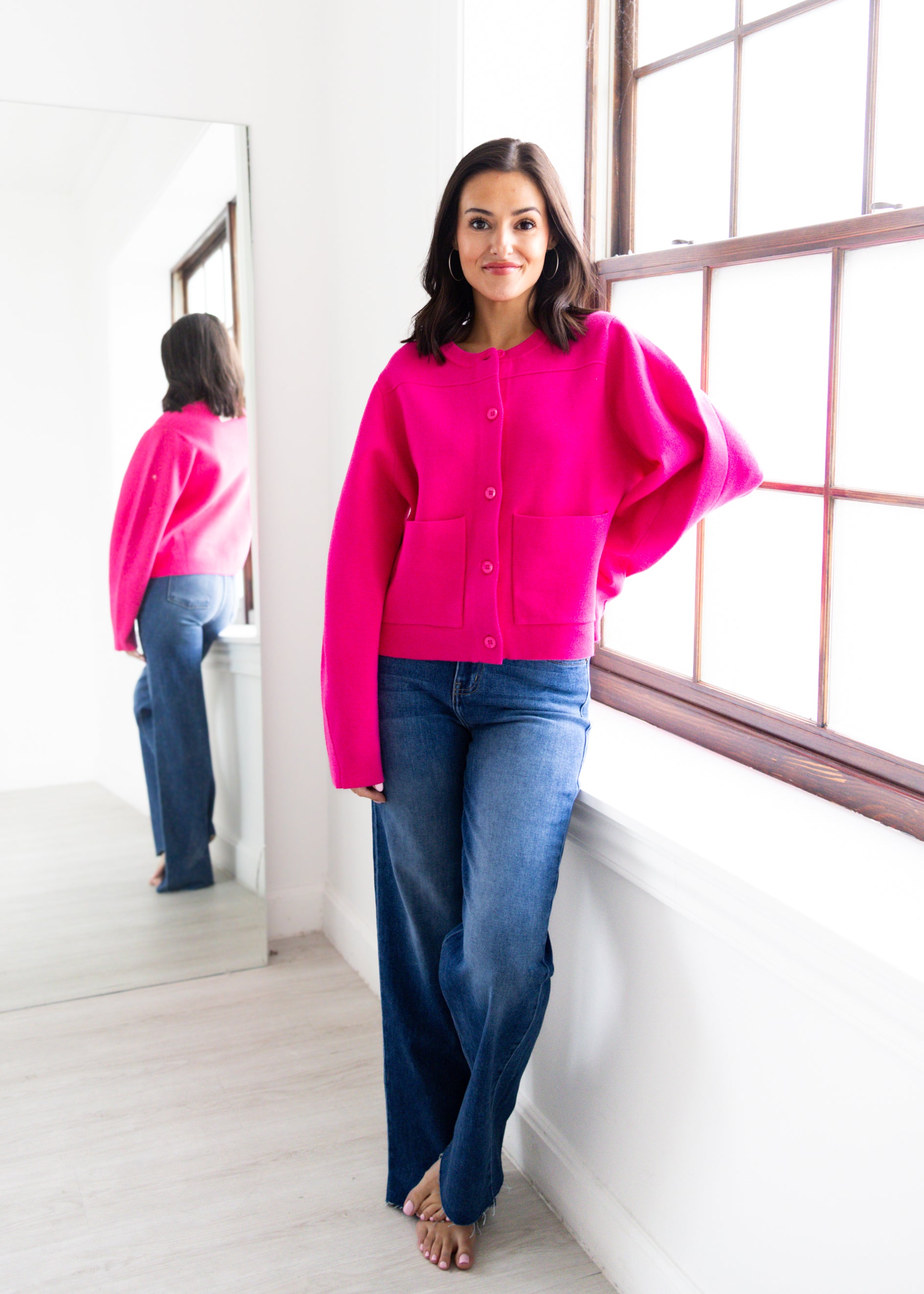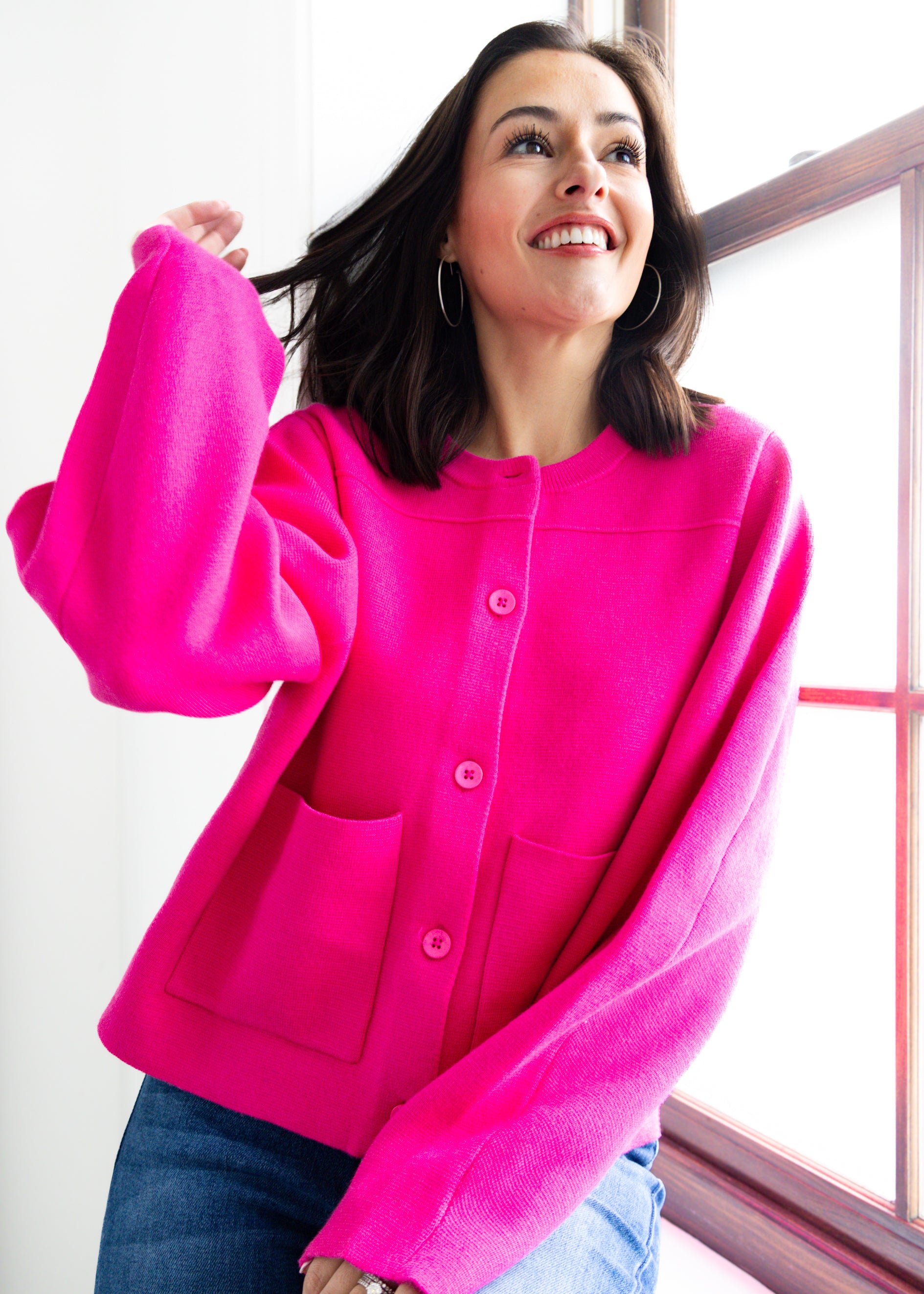 Brighten your wardrobe with the Think Pink Cardigan, a bold and playful layering piece that adds instant charm to any outfit. Crafted from a soft knit fabric, this vibrant hot pink cardigan features a classic crew neckline, front button closure, and roomy front pockets for a cozy yet chic finish. Its relaxed fit makes it easy to style over dresses, tanks, or tees, while the eye-catching color ensures you’ll stand out in every season. Perfect for casual days or dressed-up moments, this pink cardigan is your go-to for comfort and style.