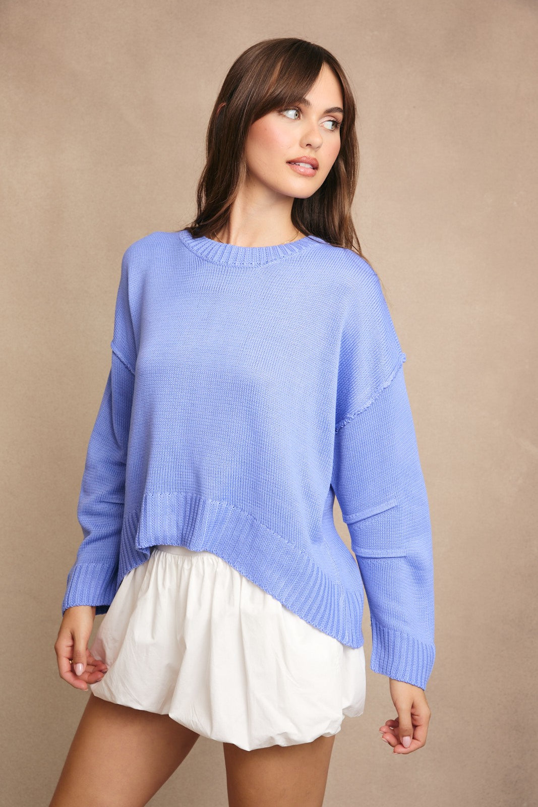 Bring a pop of joy to your closet with the Knit Happens Sweater! This cozy piece showcases a delightful light blue shade and whimsical pleated sleeves, adding a lively touch to your daily style.