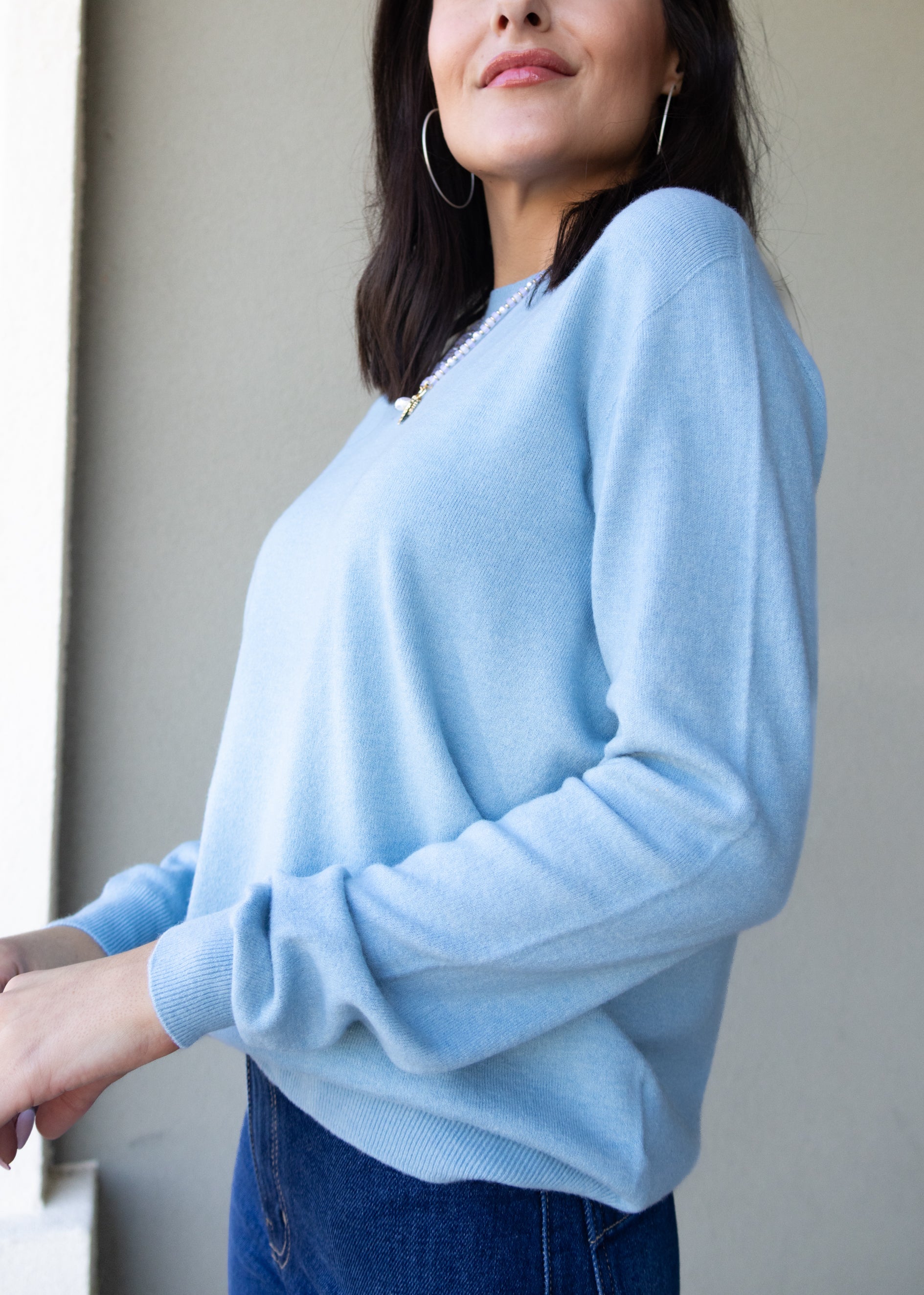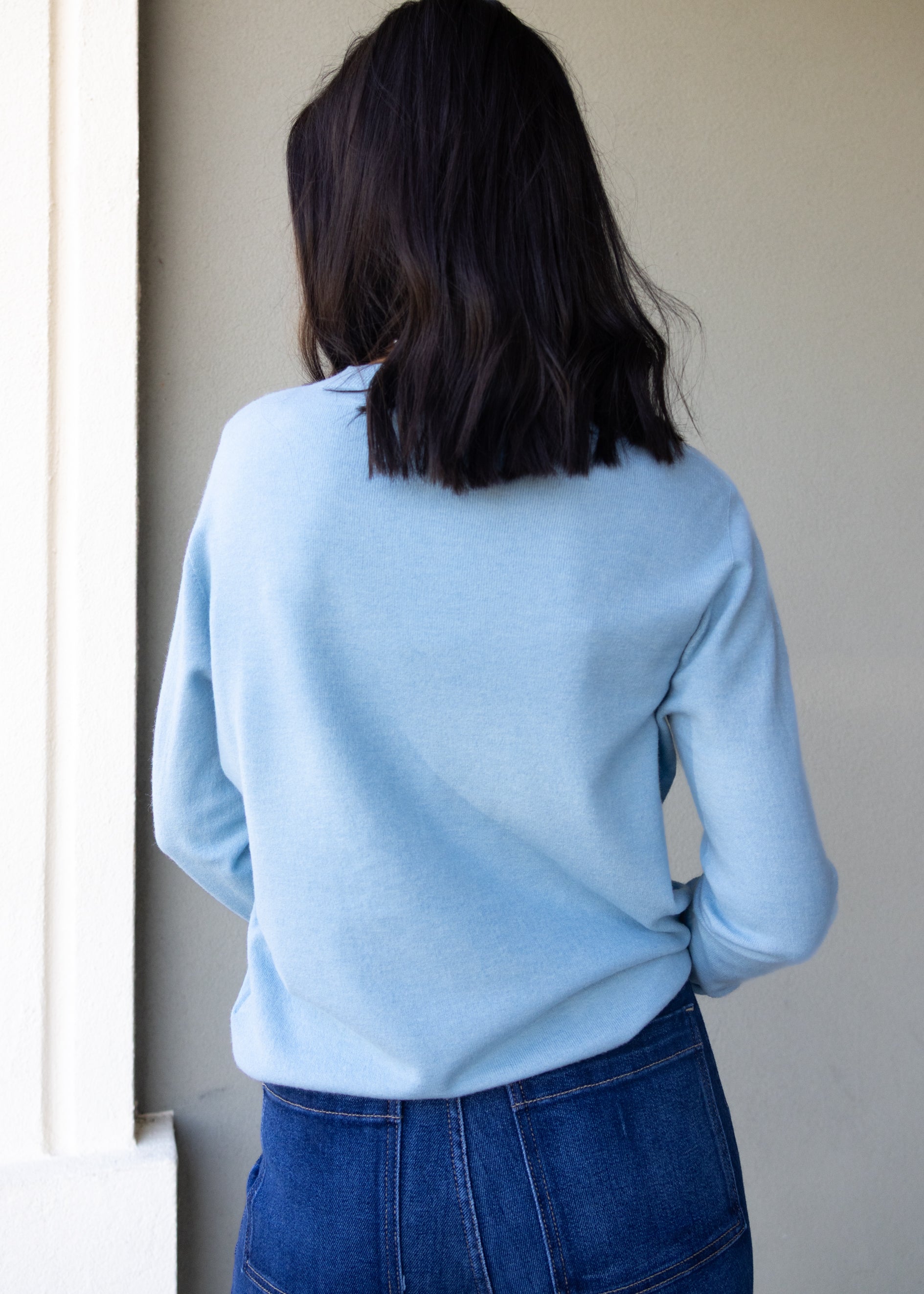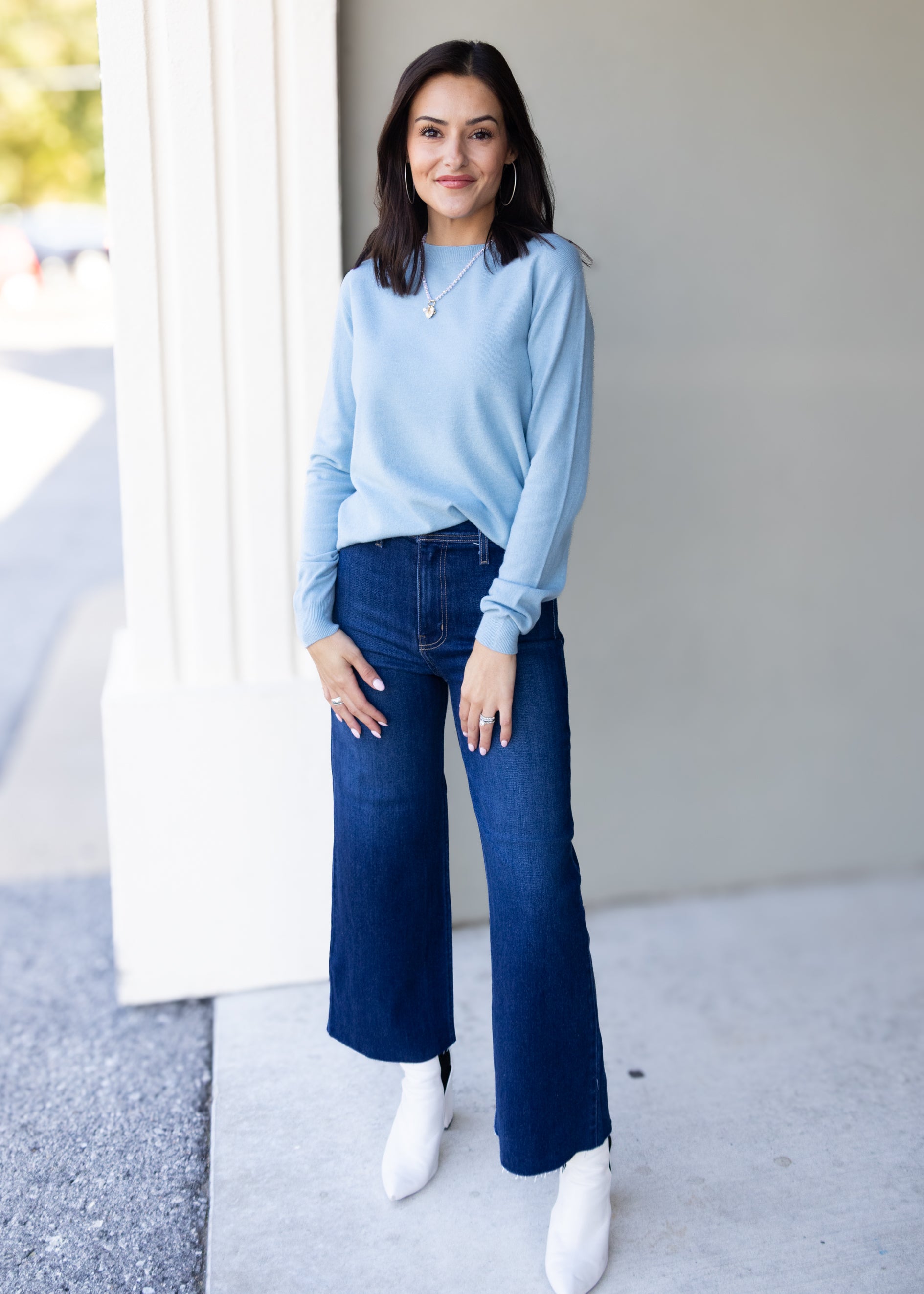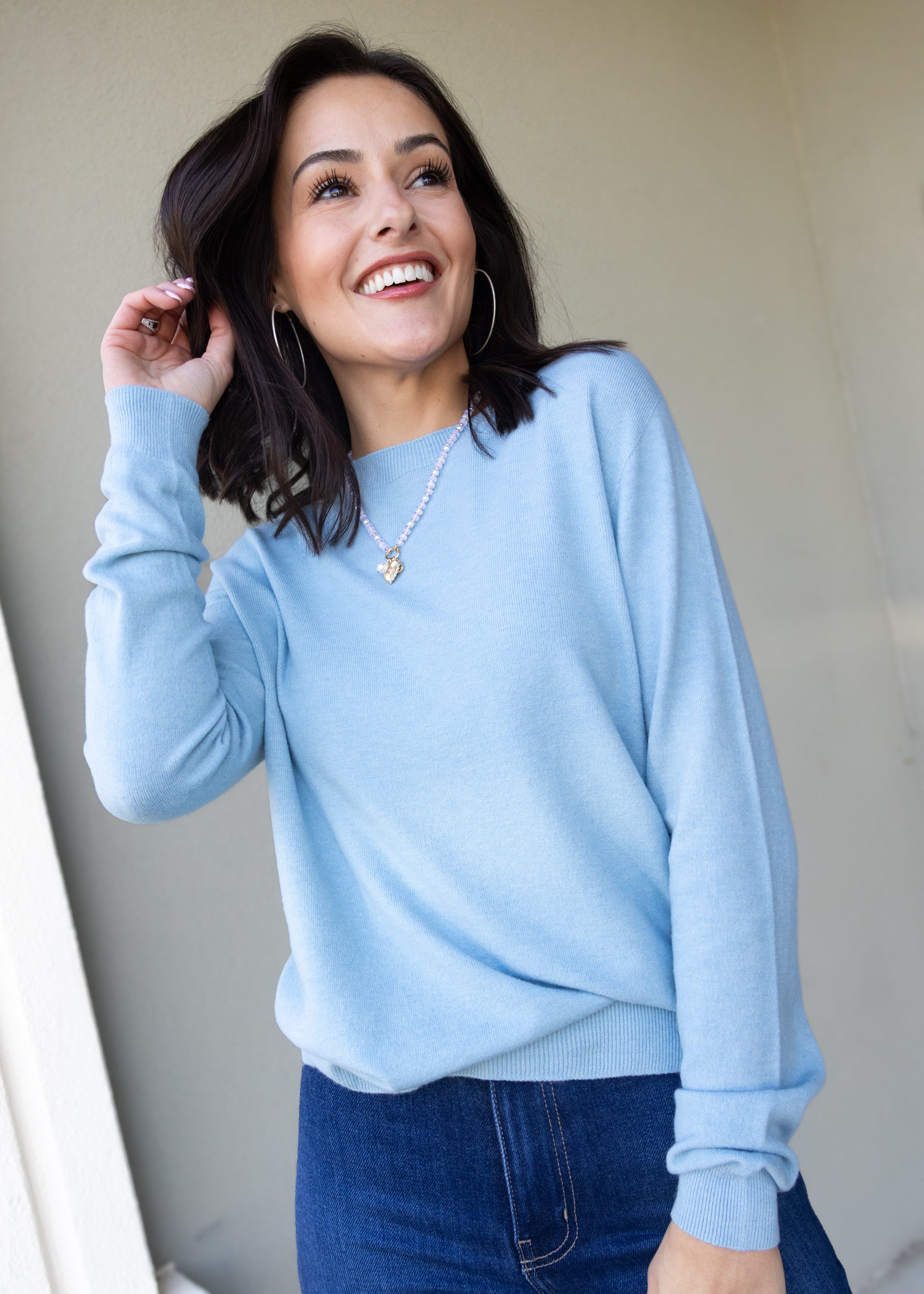 The Blue Skies Sweater brings a fresh pop of color to your wardrobe with its dreamy sky blue hue. Crafted in a soft knit with a flattering relaxed fit, this women’s sweater blends cozy comfort with effortless style. Perfect for layering through every season, it pairs easily with denim, skirts, or tailored pants for a versatile look. A must-have knitwear essential that brightens your everyday outfits with a touch of charm.