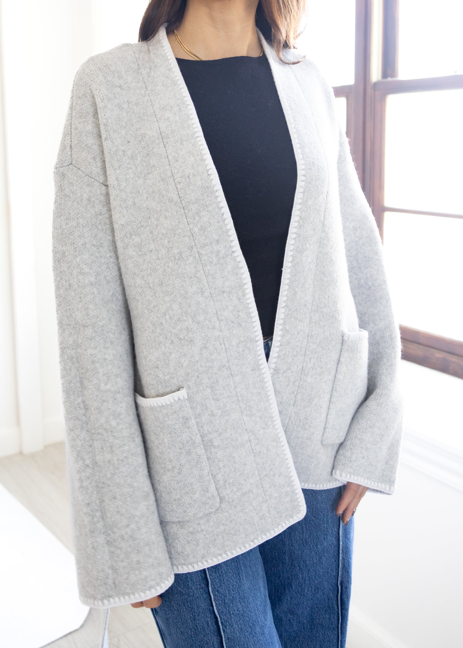 Subtle contrast stitch trim along edges