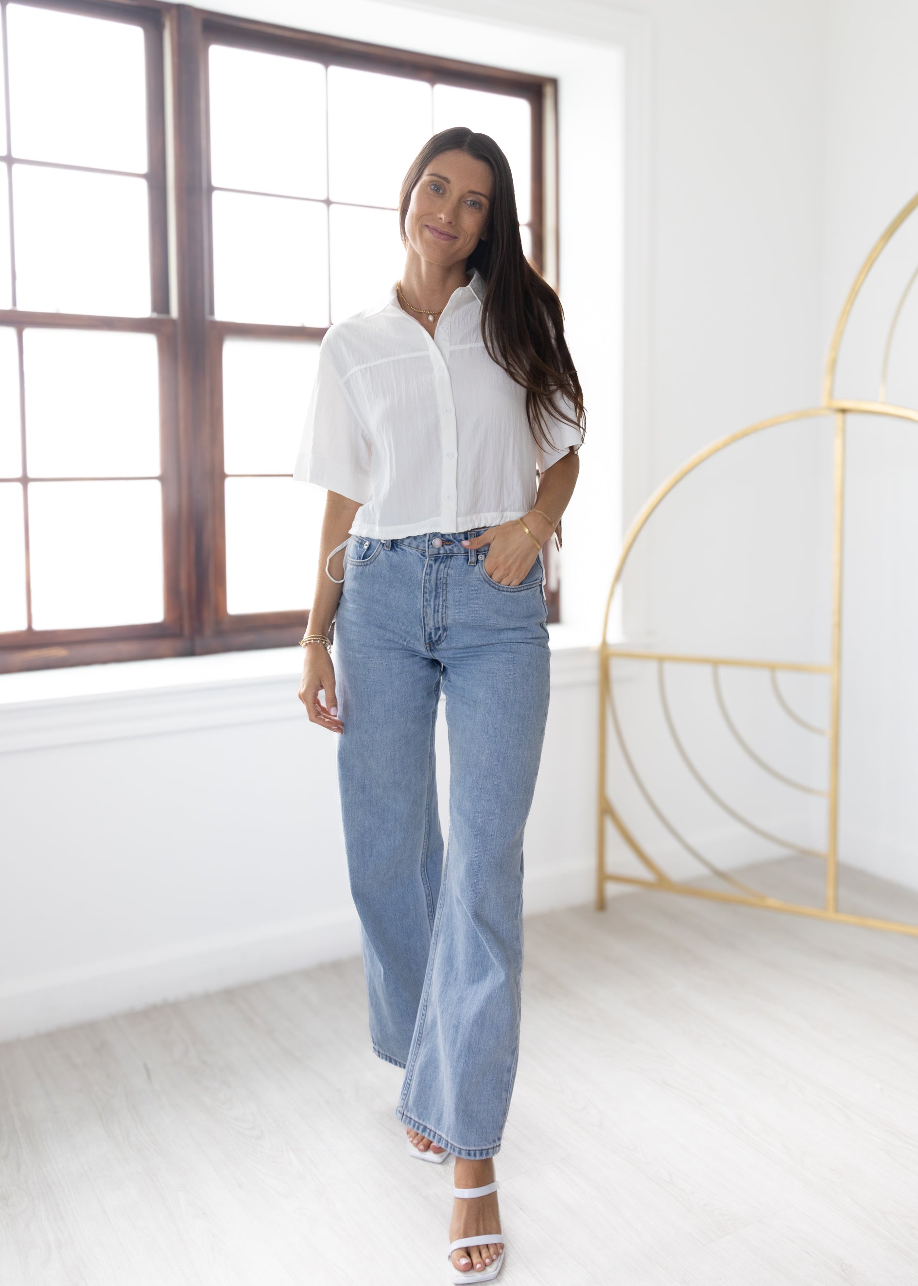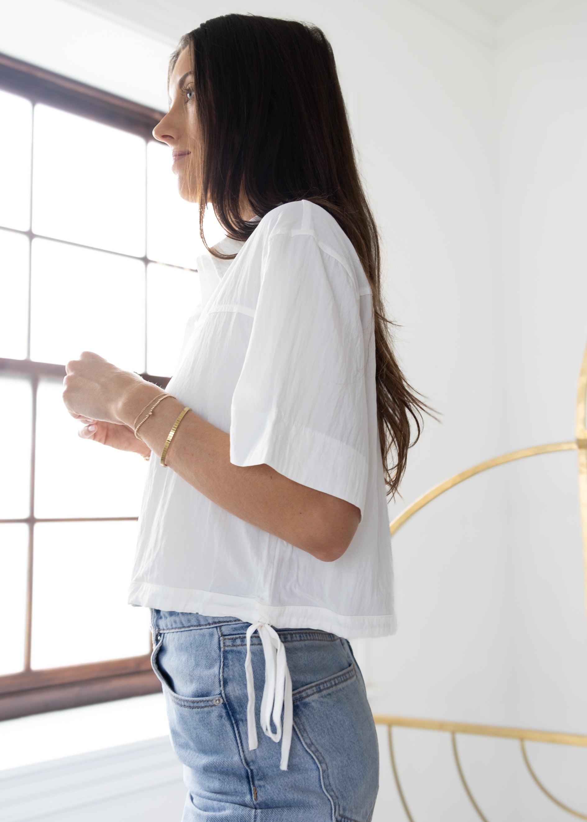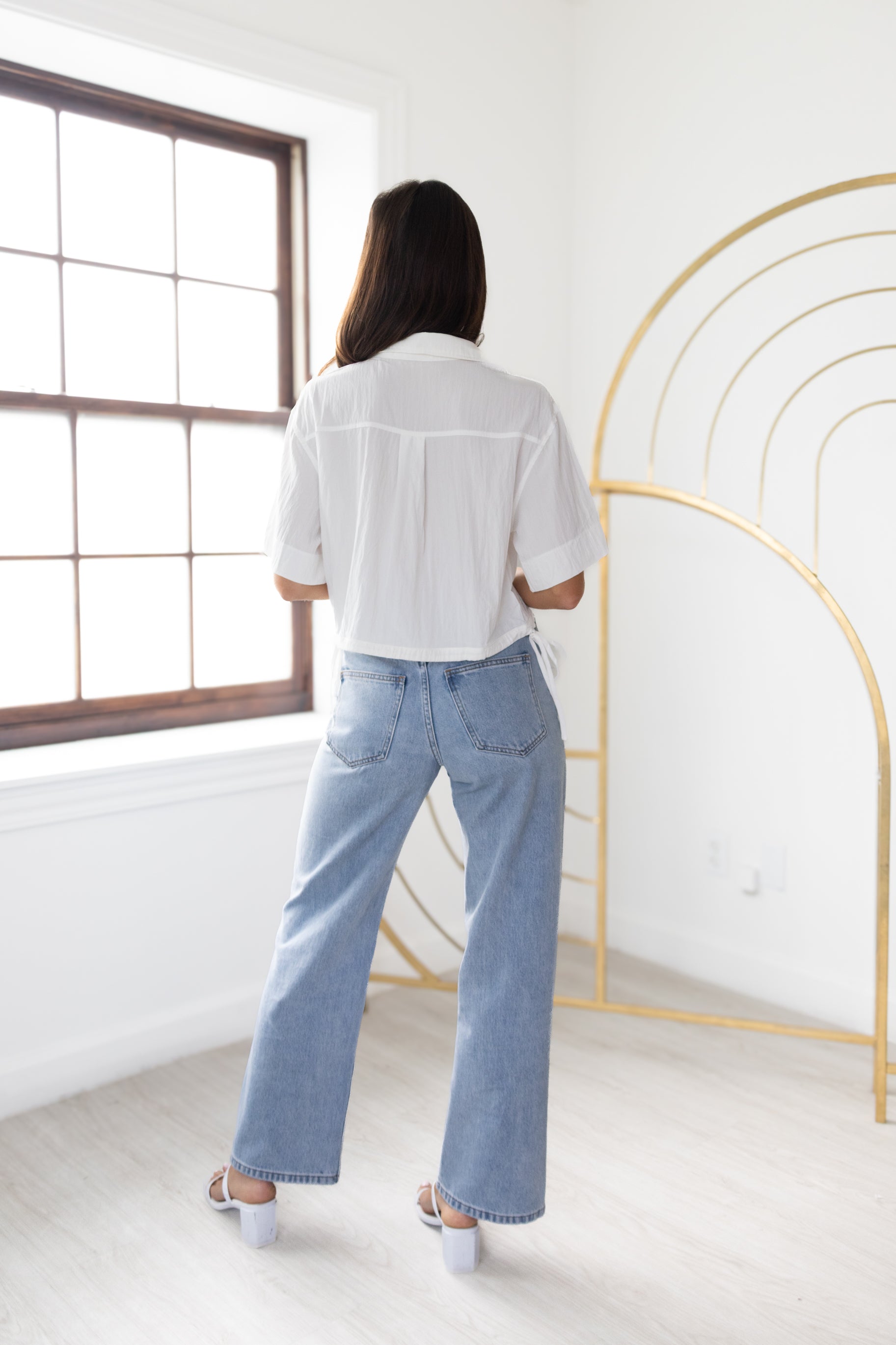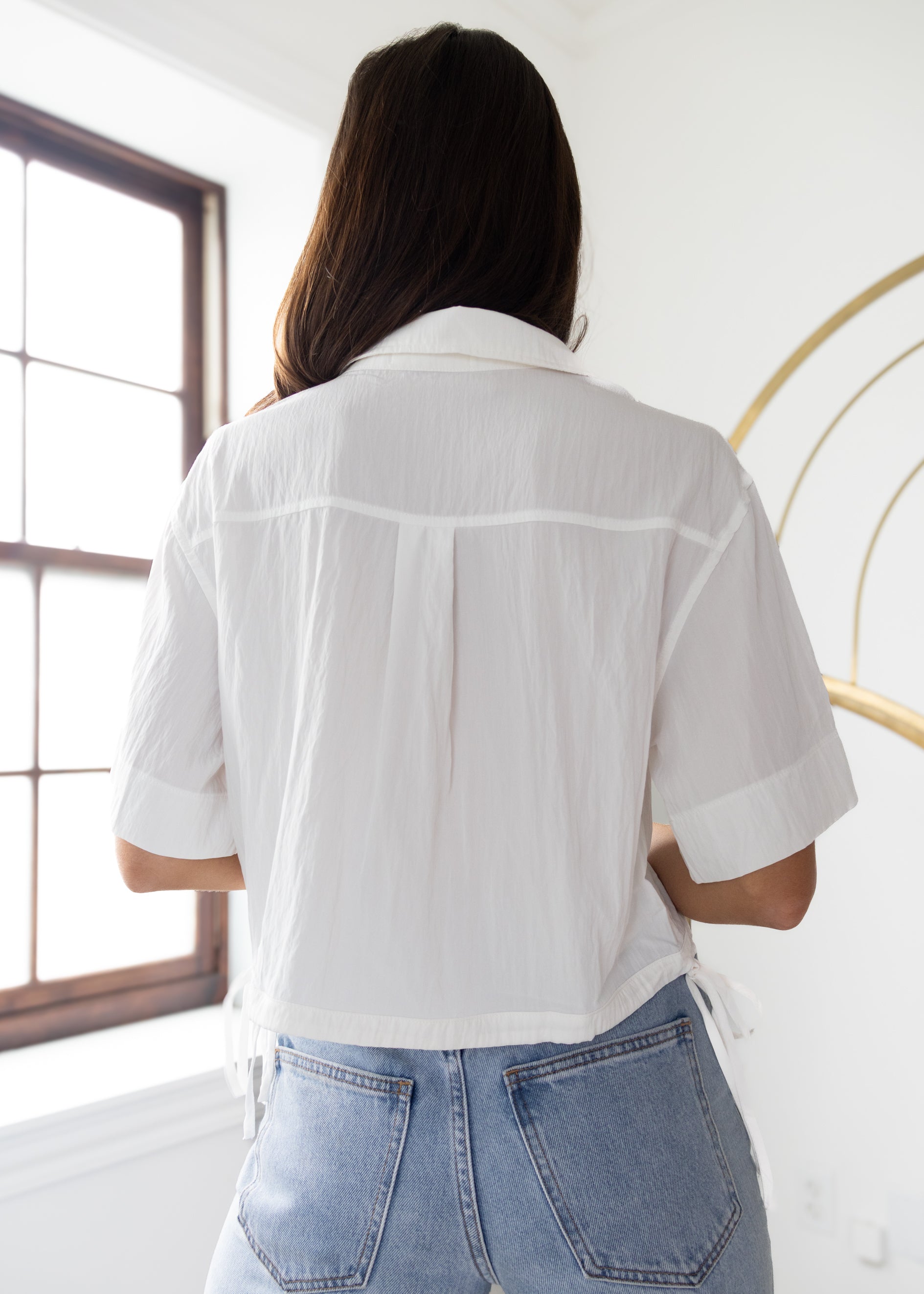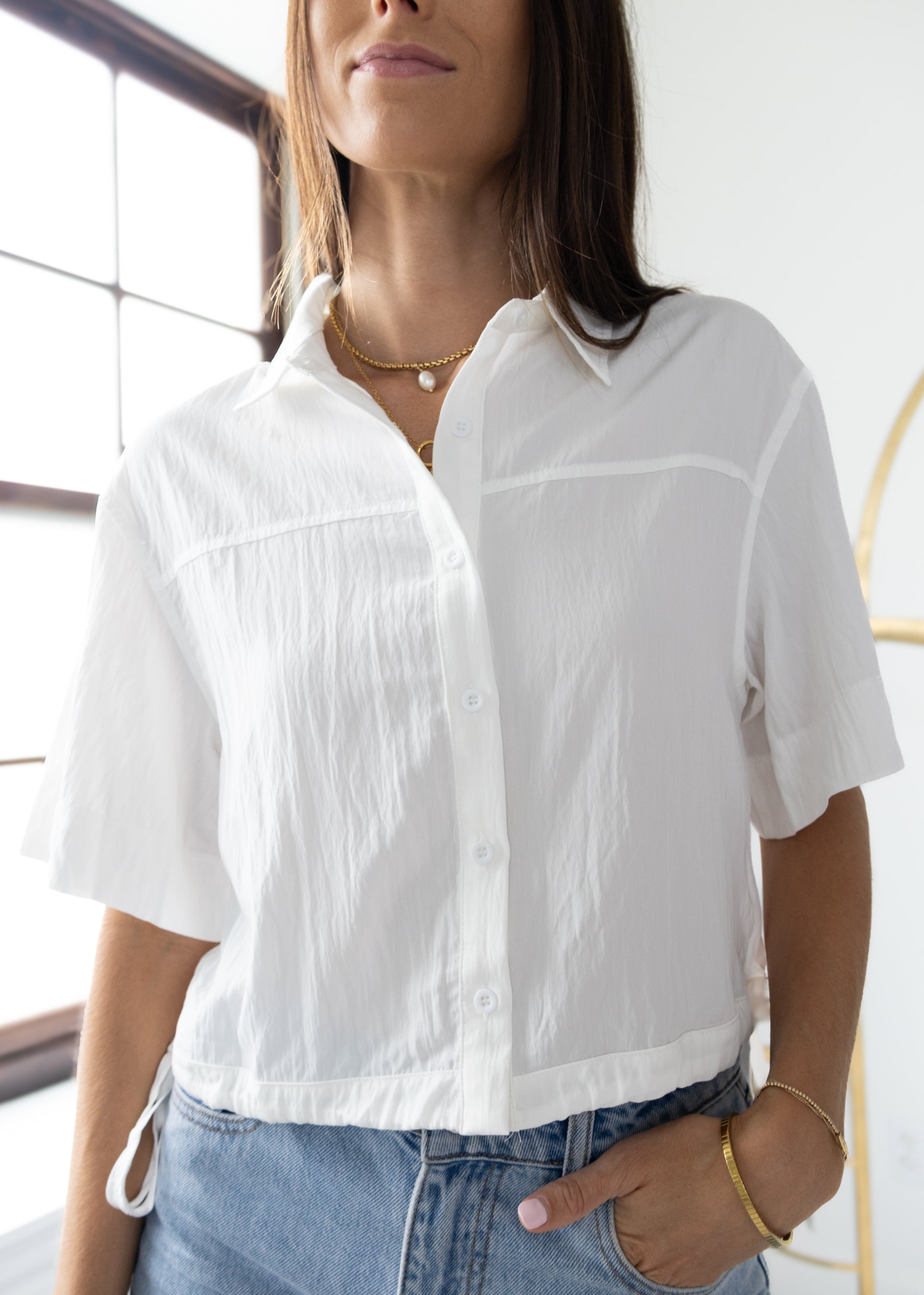 The Elle Drawstring Poplin Top brings a fresh twist to your wardrobe with its crisp white fabric and sharp pointed collar. Its boxy silhouette offers a relaxed yet stylish fit, perfect for mixing and matching with your favorite pieces. Playful and polished, this top adds a bright, breezy vibe to any outfit!