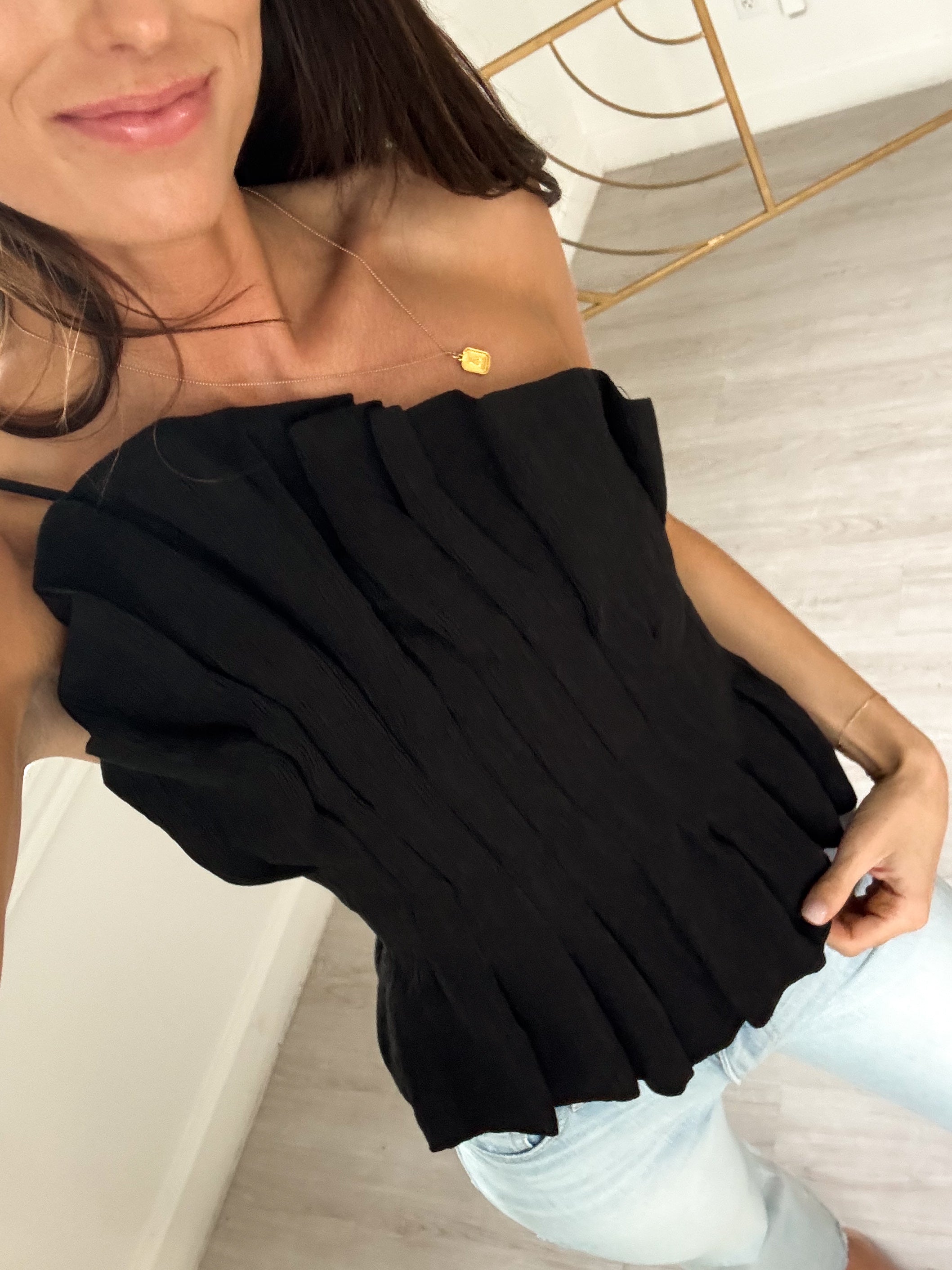 Elevate your wardrobe with our English Factory Shell Ruffled One Shoulder Top! This versatile black top features a flattering one shoulder design and elegant ruffle detailing. Perfect for any occasion, this top will add an effortlessly chic touch to any outfit.