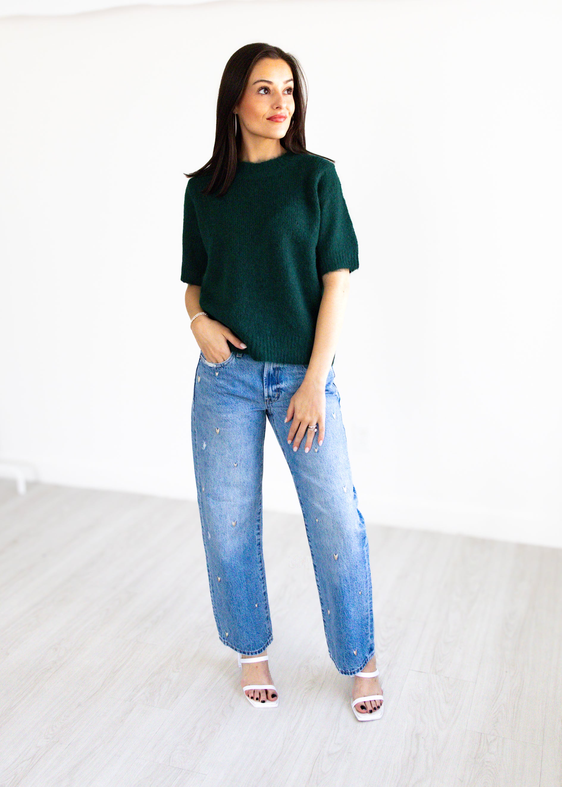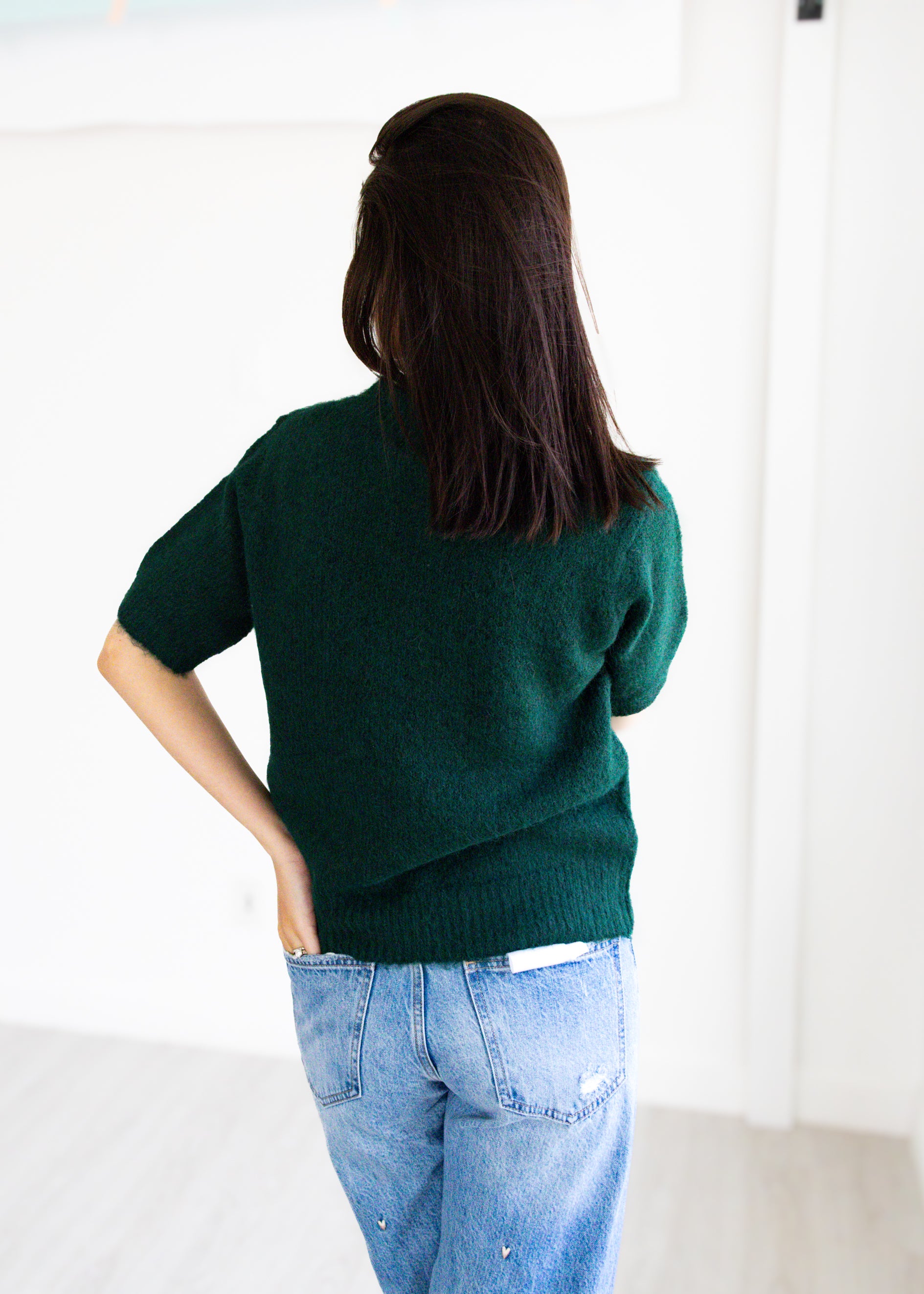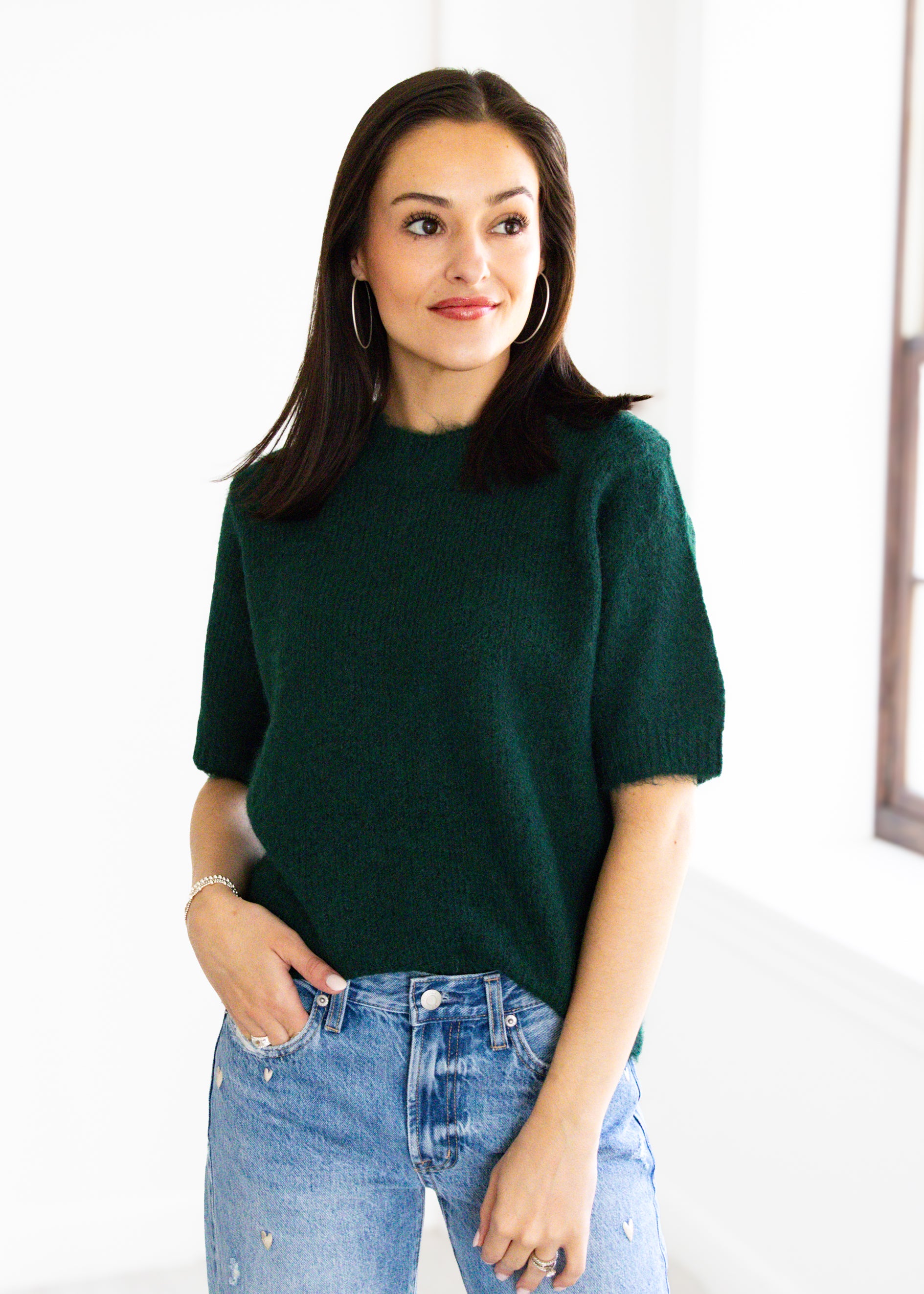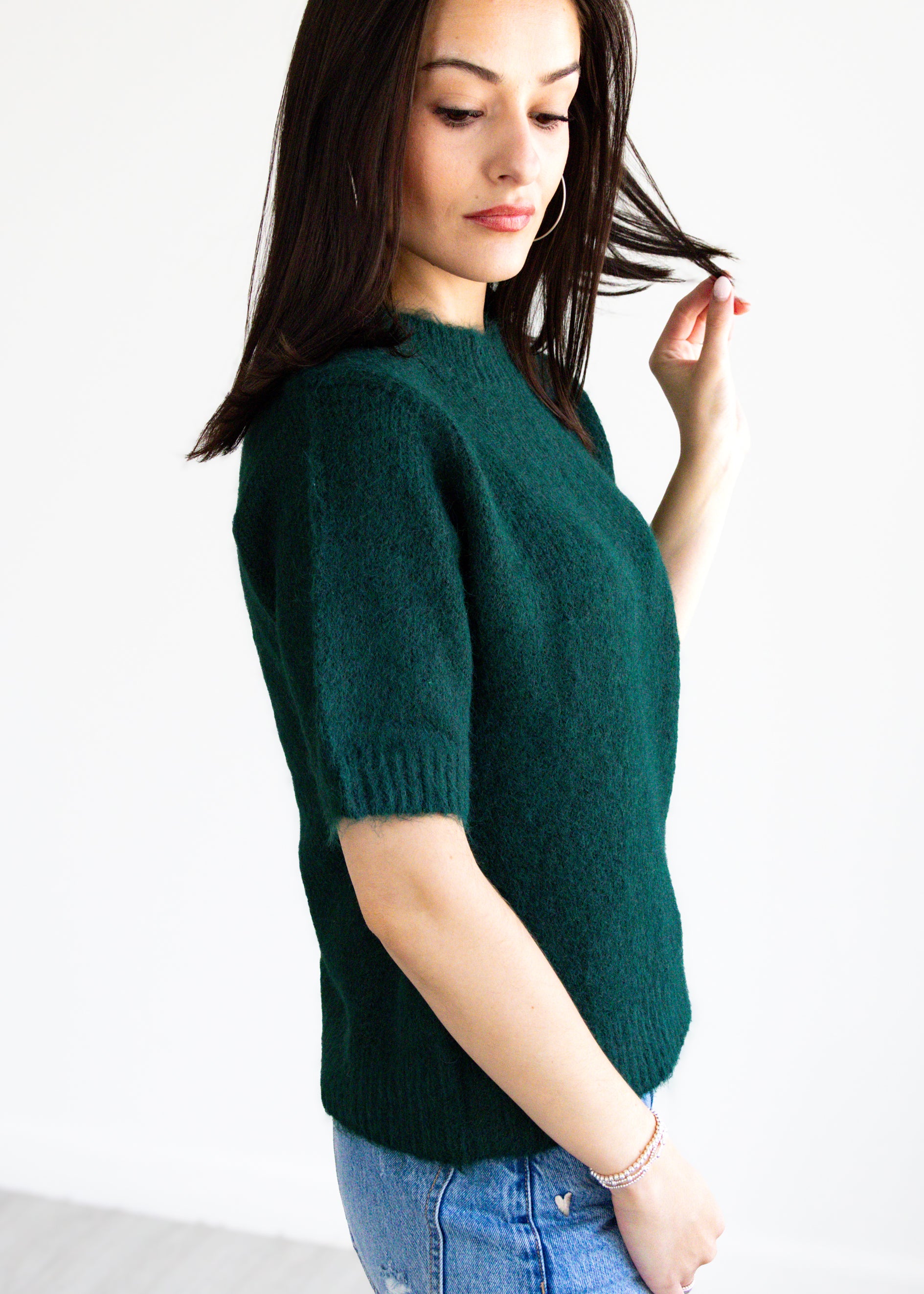 Elevate your casual style with the Ivy League Sweater, a playful take on the classic knit top. This forest green, solid short sleeve sweater blends cozy comfort with fresh vibes, perfect for layering or wearing solo when you want to add a pop of color. Its soft knit fabric keeps you comfy while the bold hue makes your outfit effortlessly cool.