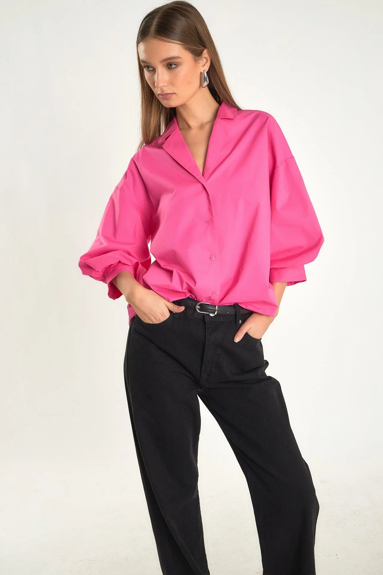 Add a pop of playful charm to your wardrobe with the Jules Blouson Sleeve Blouse in vibrant fuchsia. Its billowy sleeves and classic silhouette create a fun, flirty look perfect for any occasion. Brighten your day and stand out with this lively, stylish blouse that pairs effortlessly with your favorite jeans or skirts.