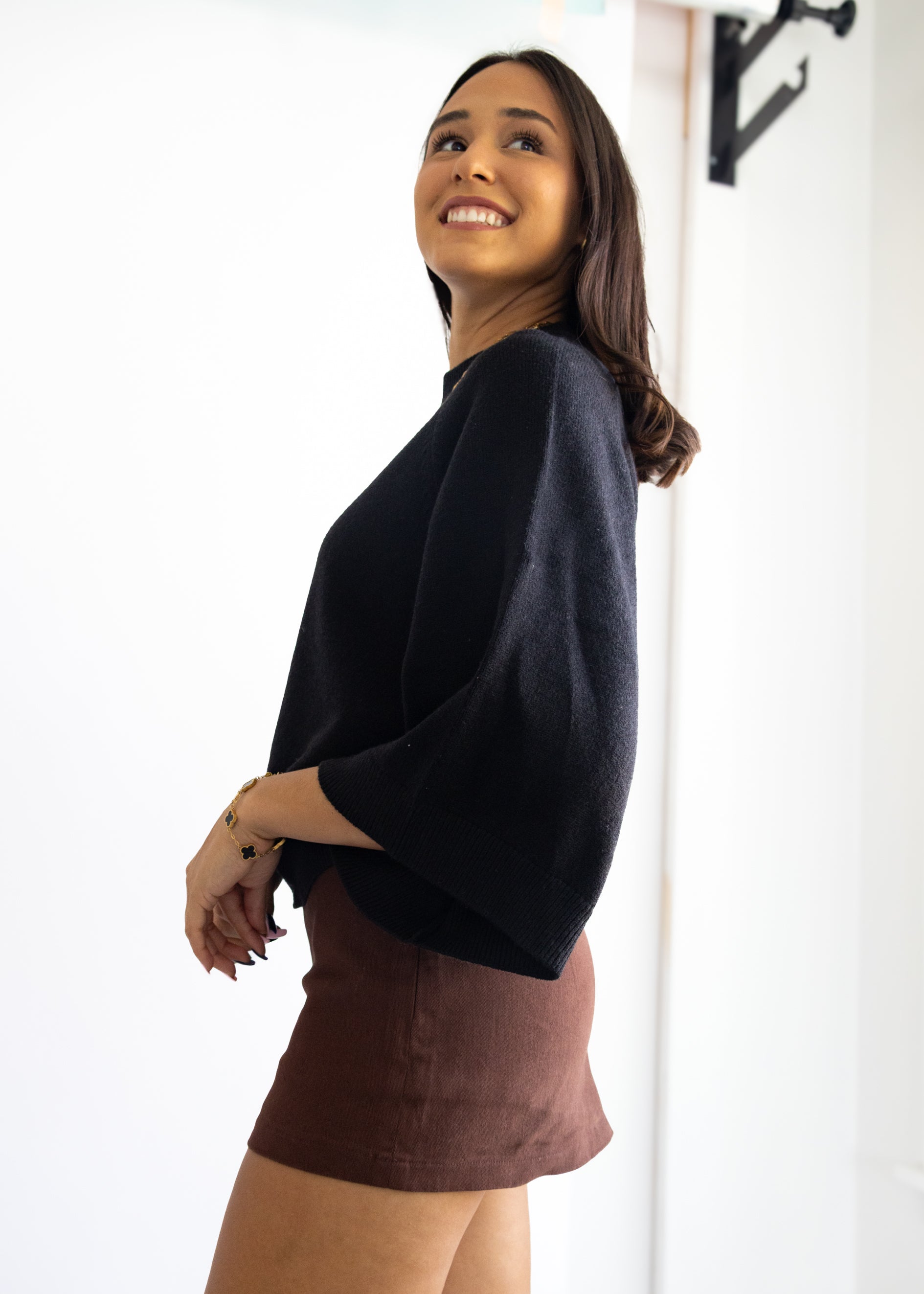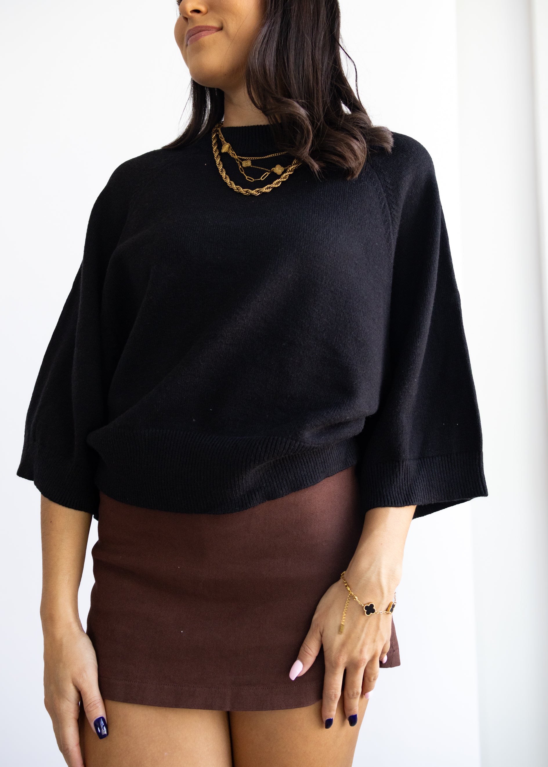 Effortlessly elegant, the Monroe Sweater is your new go-to for chic, everyday style. Crafted with a soft knit and relaxed raglan sleeves, it features a modern crew neckline and wide short sleeves for a polished yet laid-back silhouette. Perfect for pairing with tailored trousers, denim, or a sleek mini, this timeless black sweater adds a touch of understated sophistication to any look.