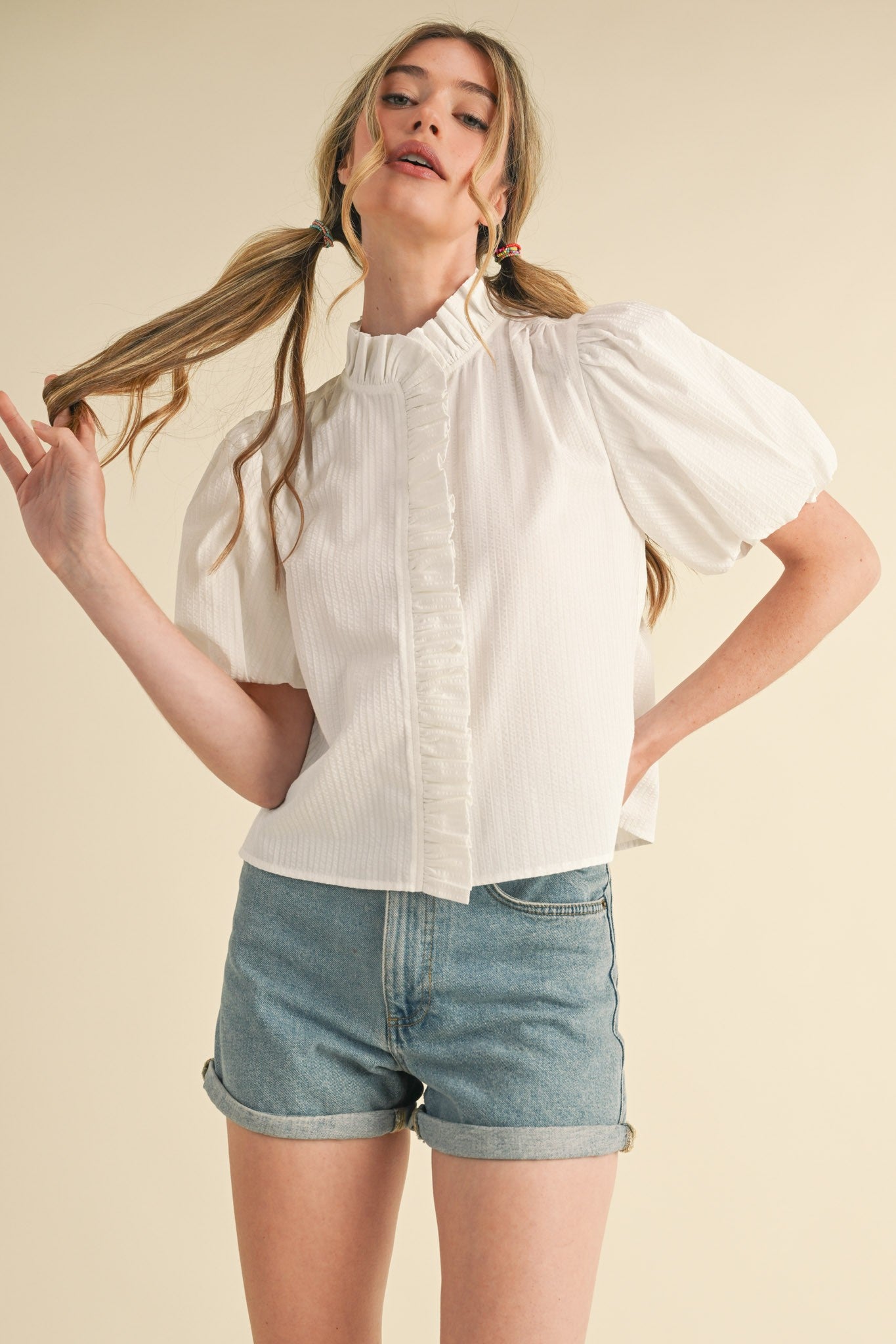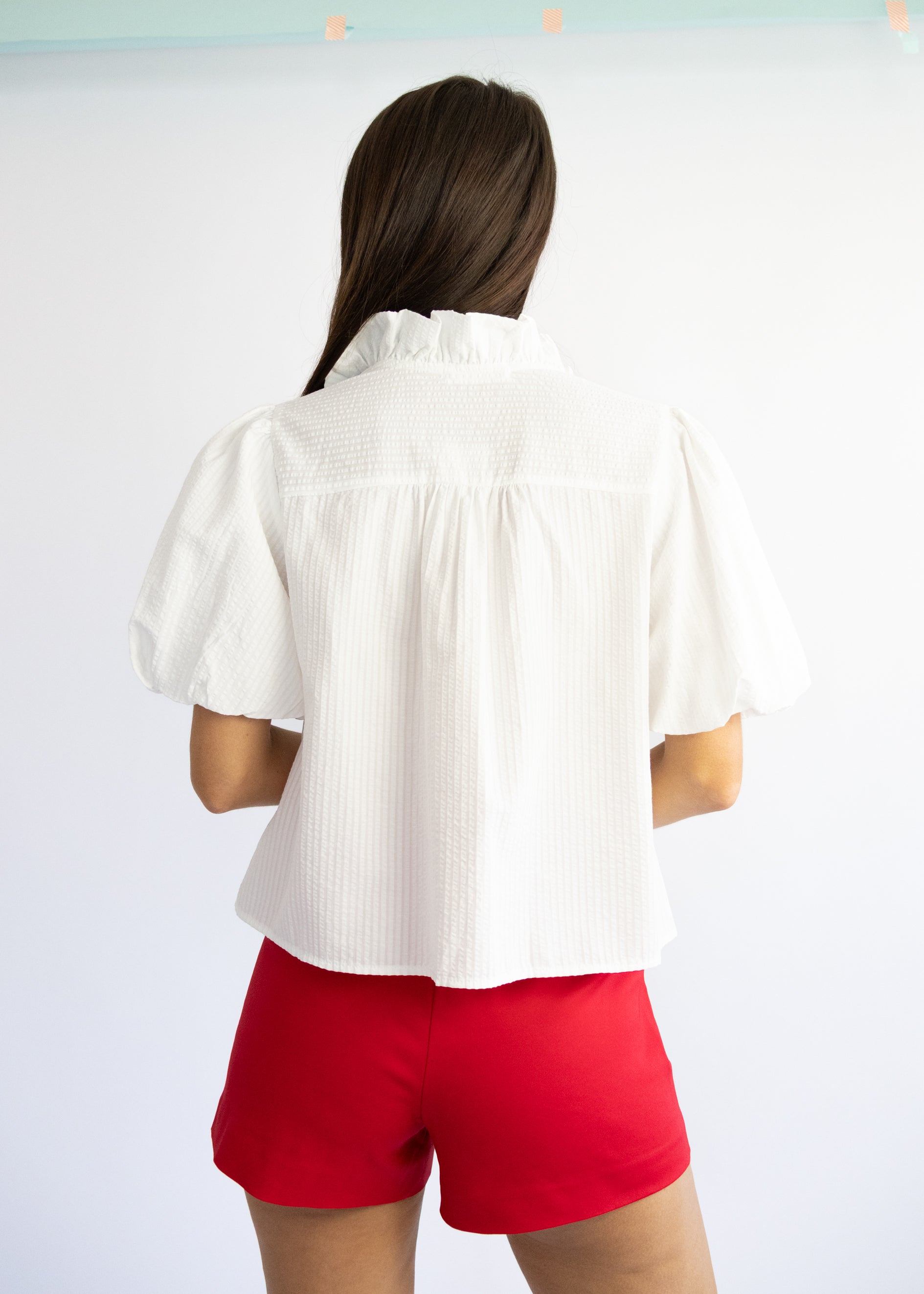 Elevate your wardrobe with our Nautical Stripe Button Down! This playful top features adorable bubble sleeves and a charming ruffle-detailed collar that adds just the right amount of flair. The white stripes create a breezy, summery vibe perfect for casual outings or dressed up with your favorite accessories.