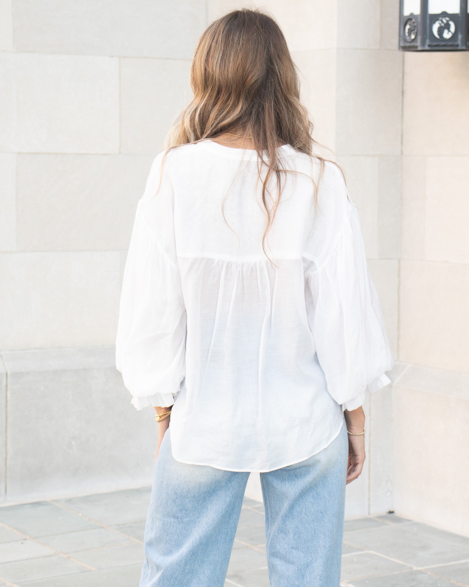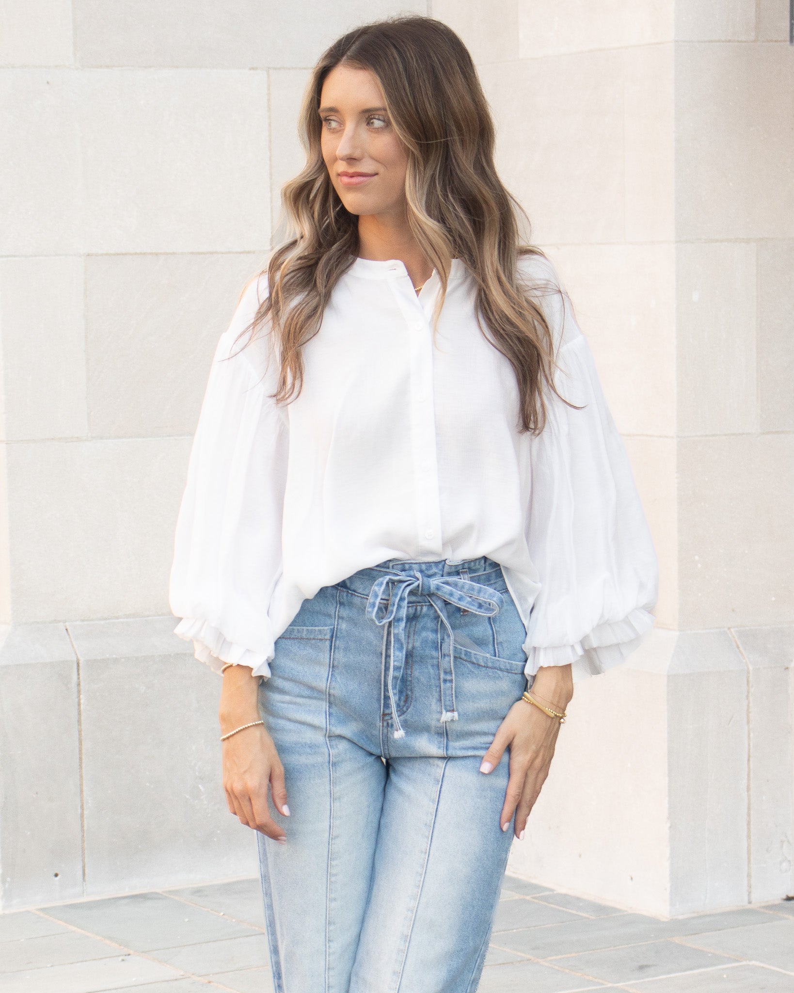 Balloon Sleeve Button Down - White