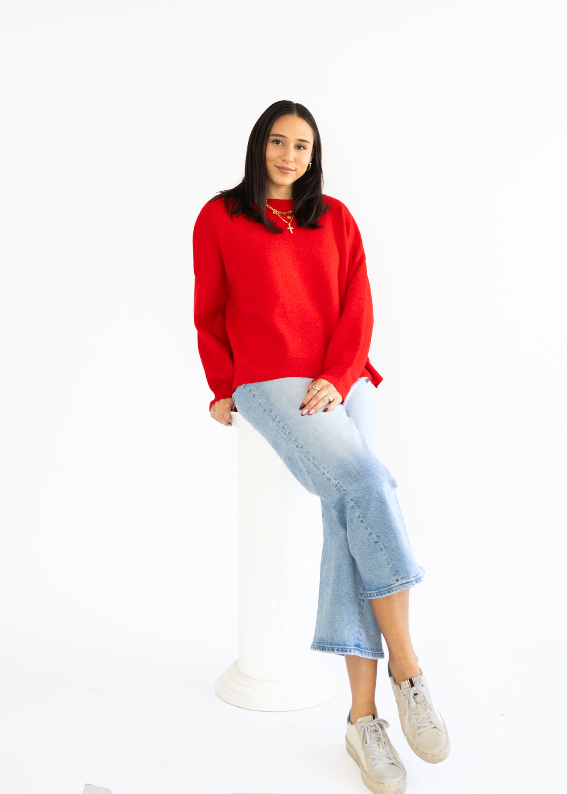 Cozy meets cute in this Say Less Sweater, dressed in a bold true red that pops with personality. Perfect for snuggling up or making a statement, its soft fabric keeps you comfy while the vibrant color adds a fun, lively touch to your look. Stay warm, look bright, and say less with this playful wardrobe essential.