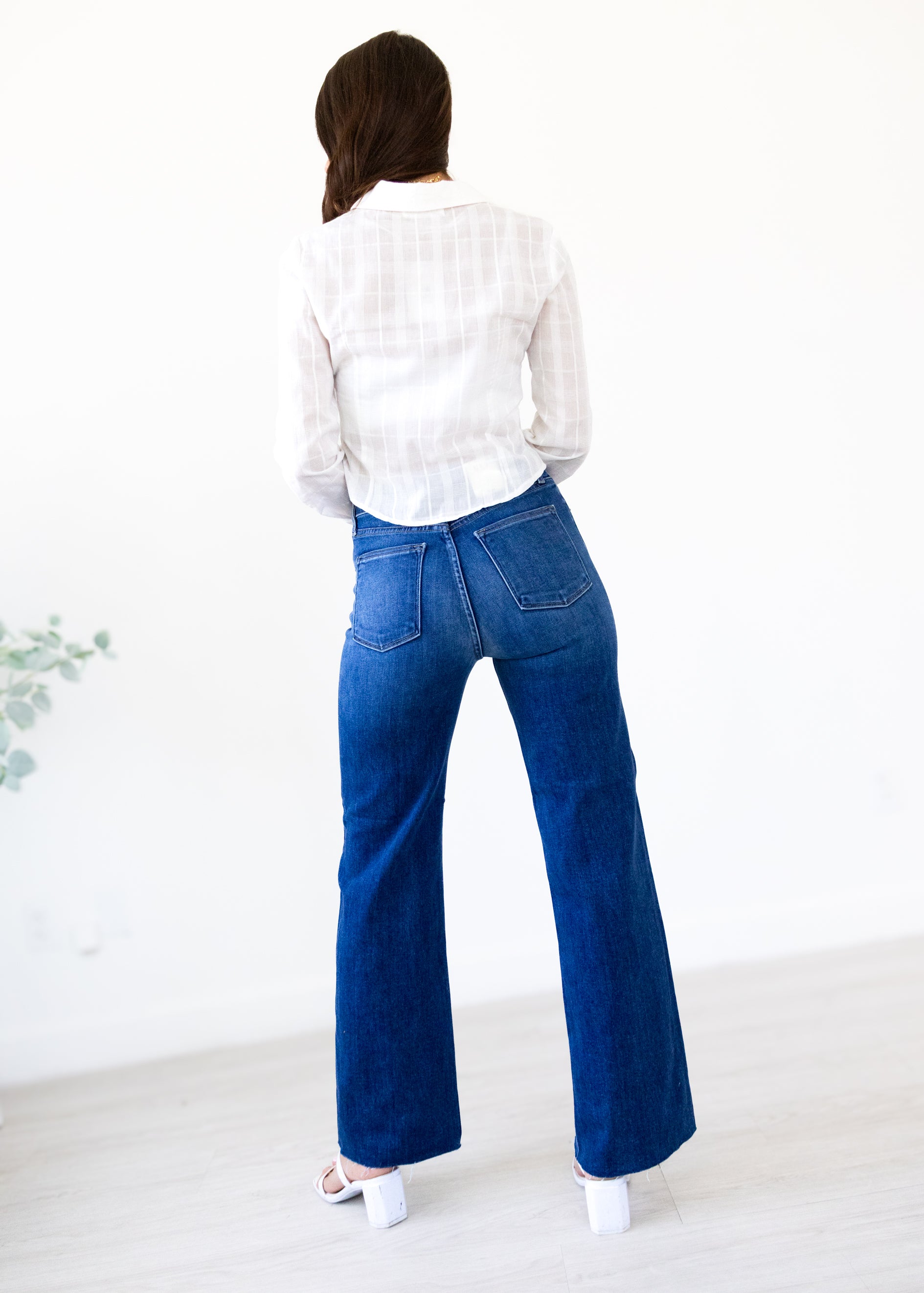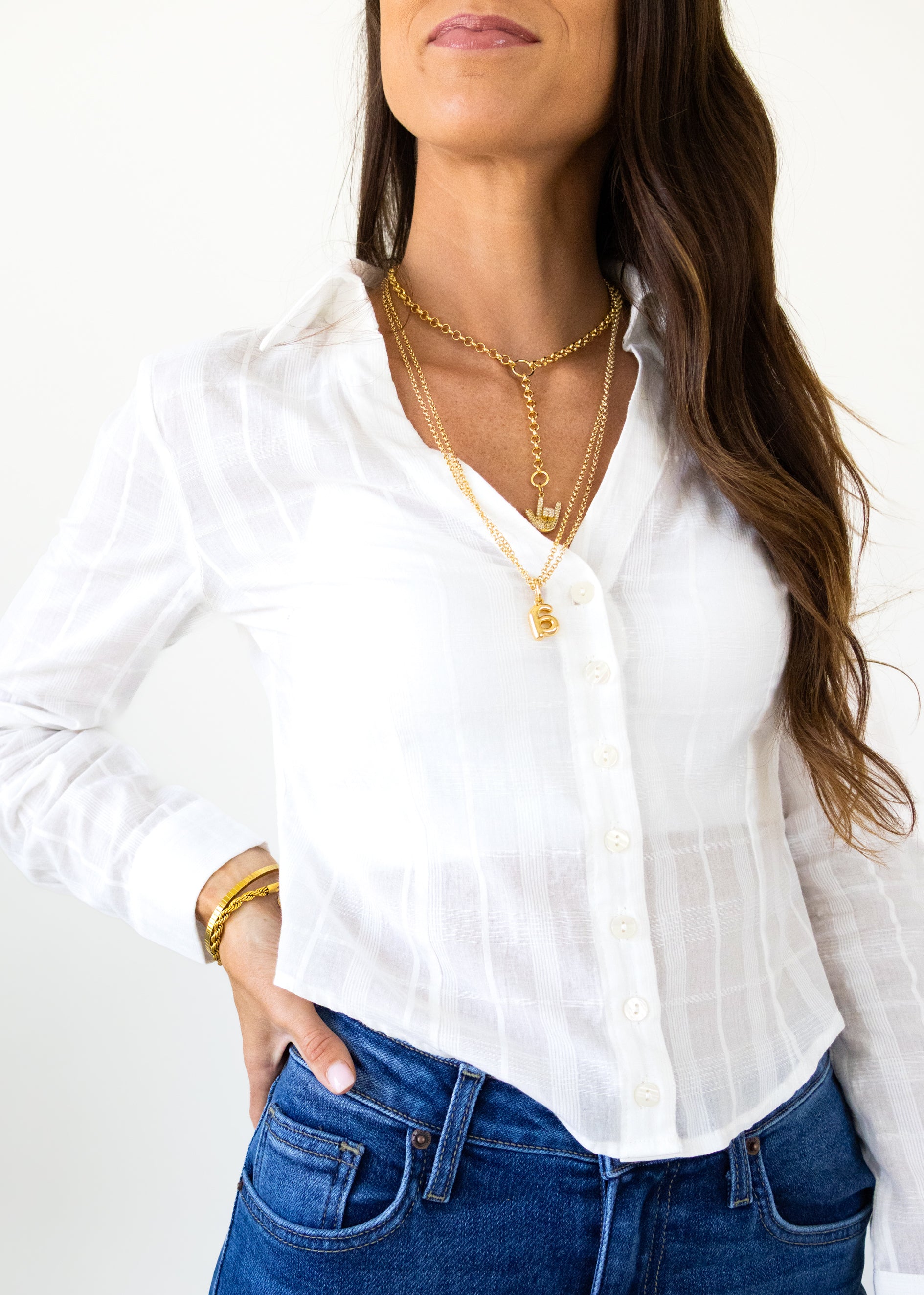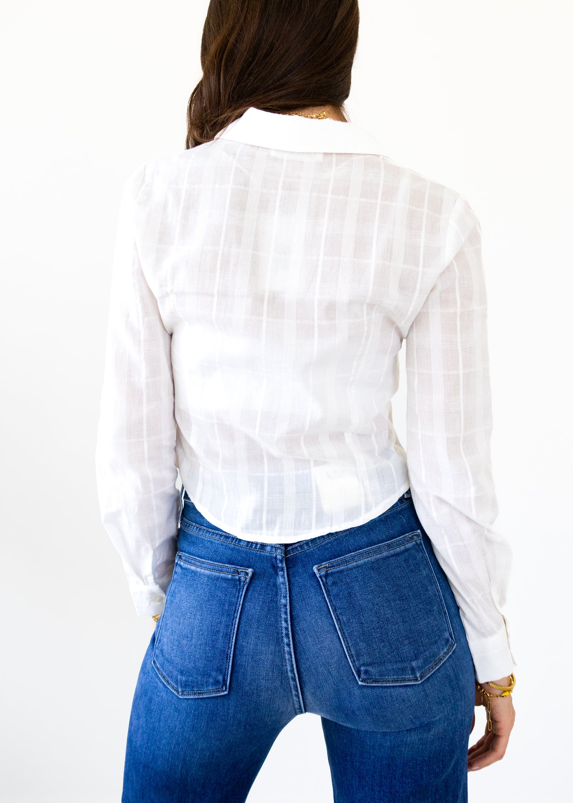 This white checked button-down shirt is your new go-to for effortless style. Lightweight and breathable, it keeps you comfy all day long. The classic collar and button-down front add a touch of timeless charm, perfect for layering or wearing solo.
