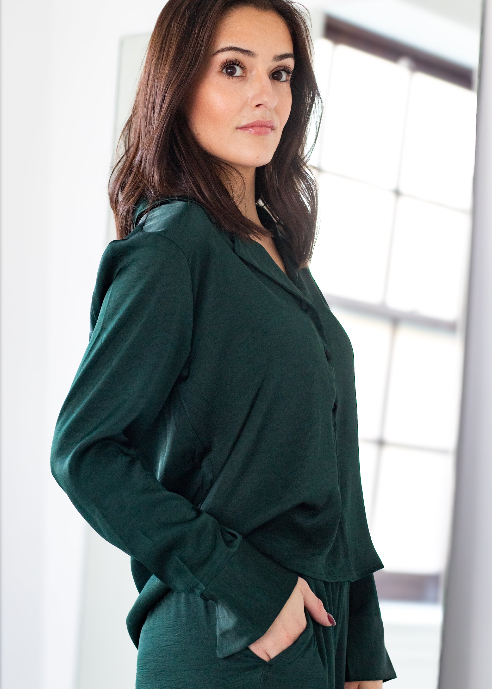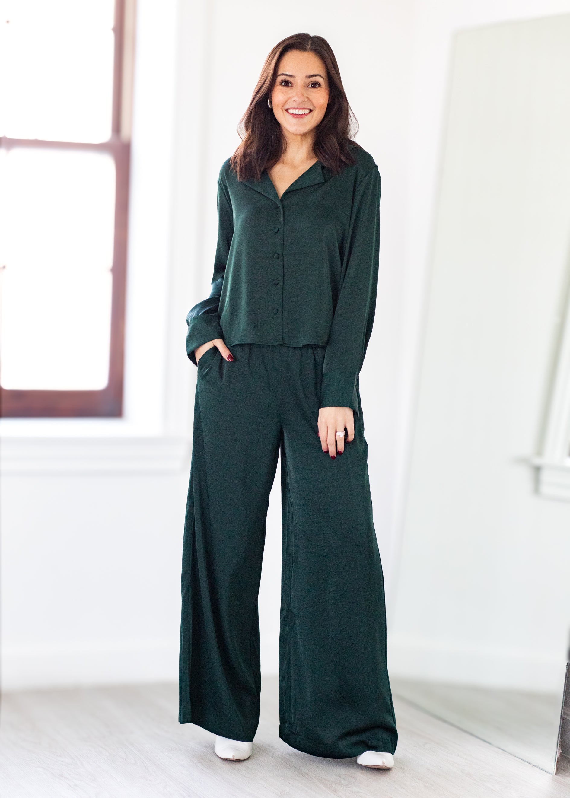Soft, drapy satin elevates this classic button-up with a modern, polished feel. Designed with a relaxed fit, collared neckline, and button-front closure, it flows effortlessly for a look that’s both refined and easy to wear. The subtle sheen and fluid drape make it a timeless piece—perfect for dressing up workday looks or adding a touch of luxe to nights out. Pair with our matching Z Supply Pants for the perfect, monochrome set.