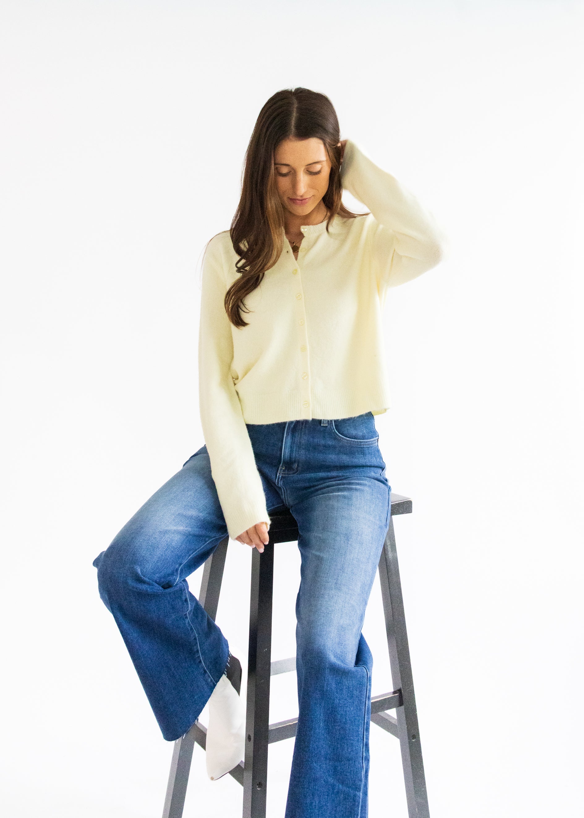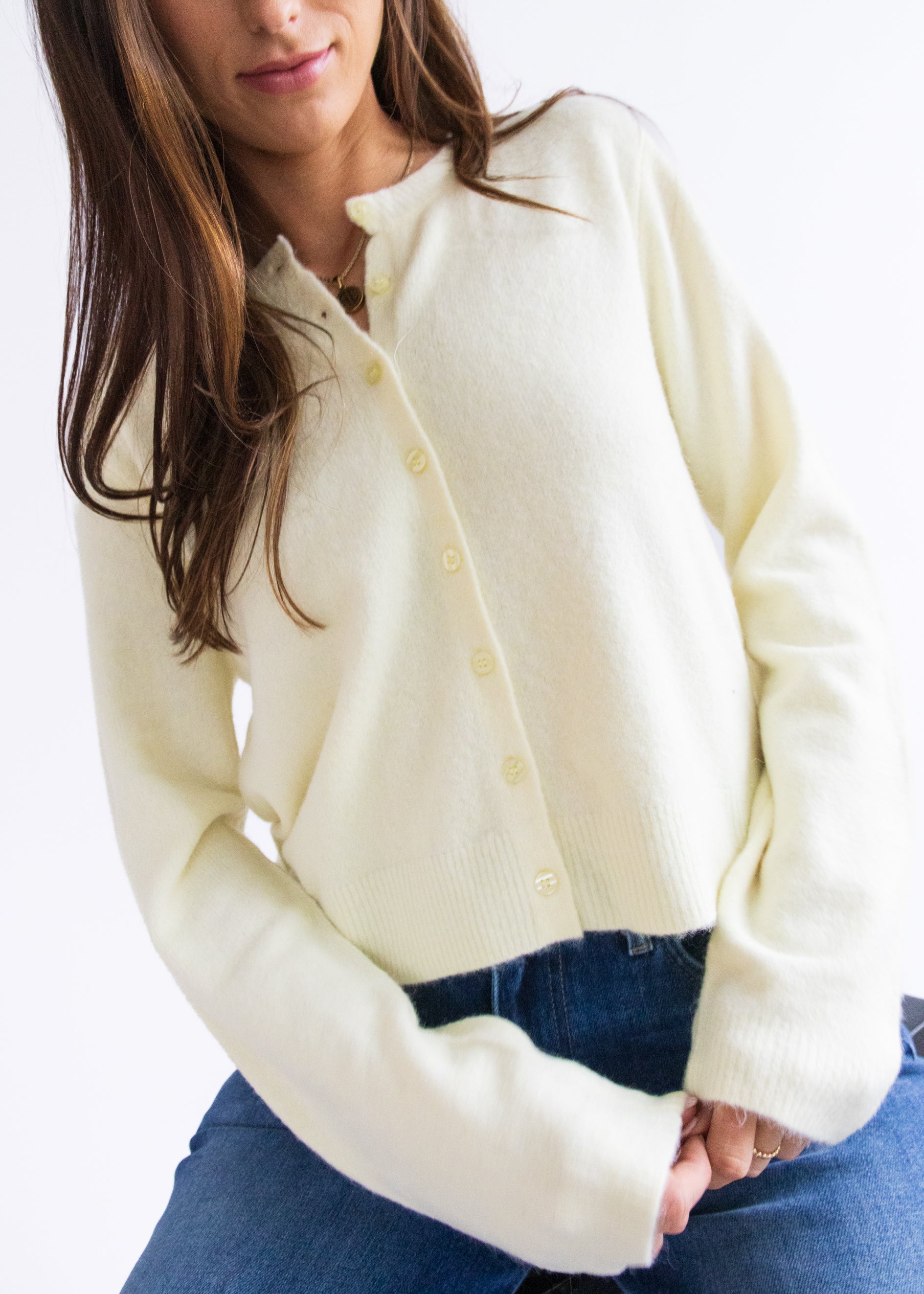 This relaxed crewneck cardigan is made from cozy sweater yarns with an easy button-up front that’s perfect for layering. Whether tossed over a tank or worn solo, it’s the ideal go-to for cozy, casual days.
