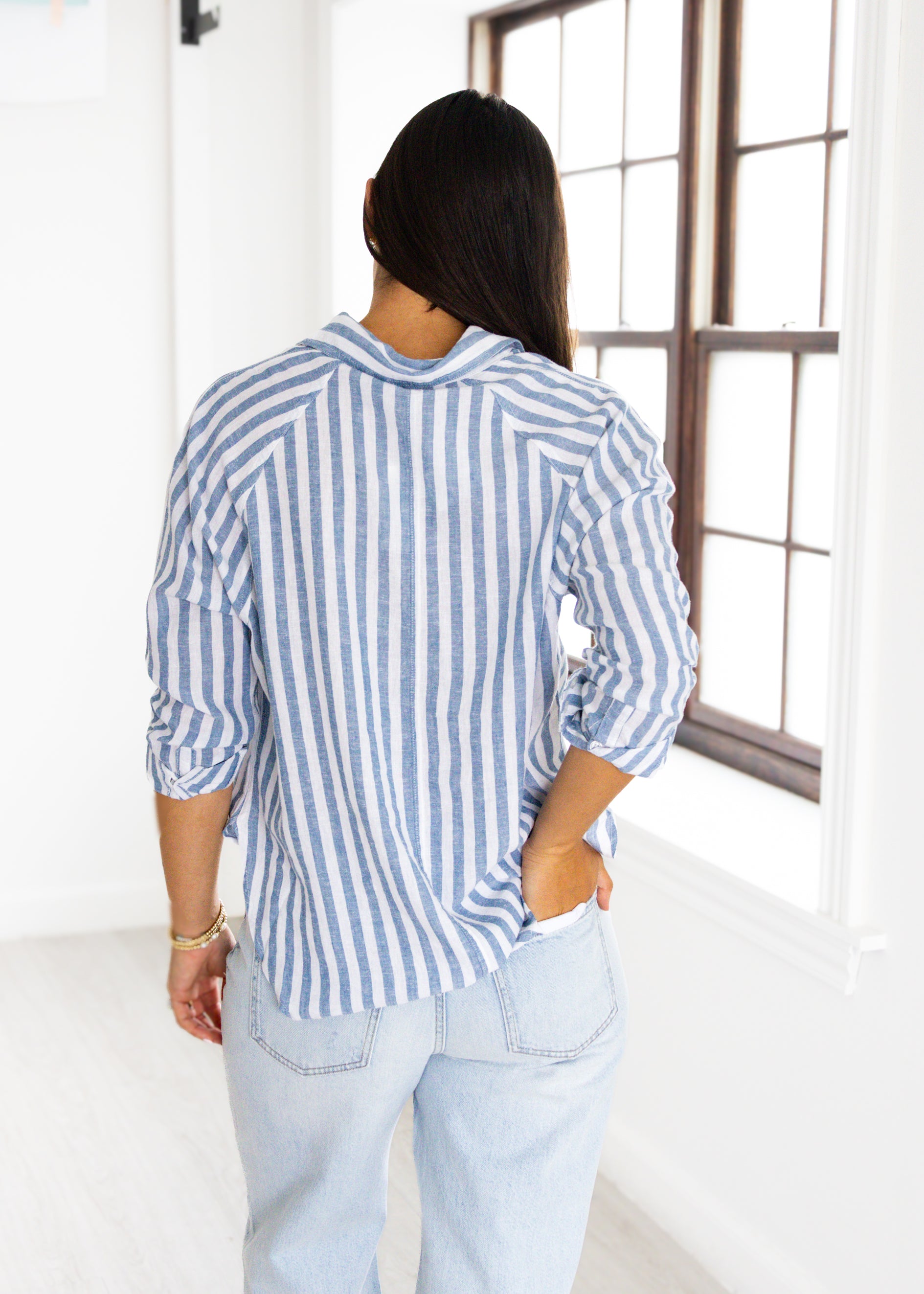 You'll love the easy, breezy comfort of this classic stripe button-up. Featuring that soft, drapey feel you look for, you can wear it alone or as a lightweight layer for an effortless look, no matter where your day takes you.
