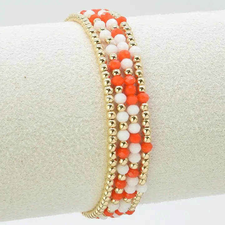 Add a pop of team spirit to your game day look with this set of four stretchy bracelets in vibrant orange and gold. Comfortable and flexible, they’re perfect for cheering on your favorite team while keeping your style fun and colorful.