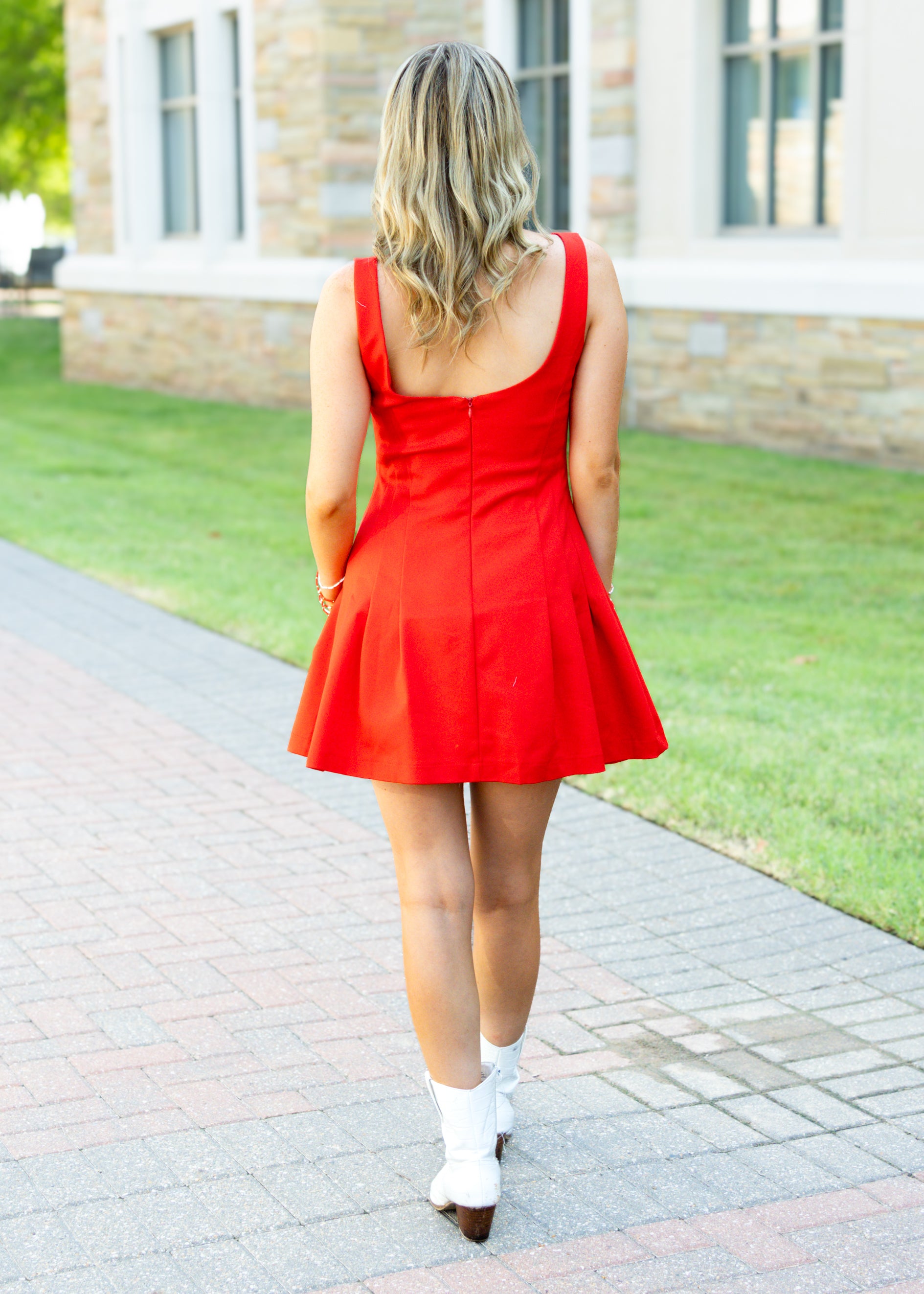 The Red Reese Mini Dress is a darling choice with its vibrant red color, playful flounce hem, and a chic open back. Perfect for adding a fun and flirty touch to your wardrobe, this dress is designed to make you feel confident and stylish at any event.