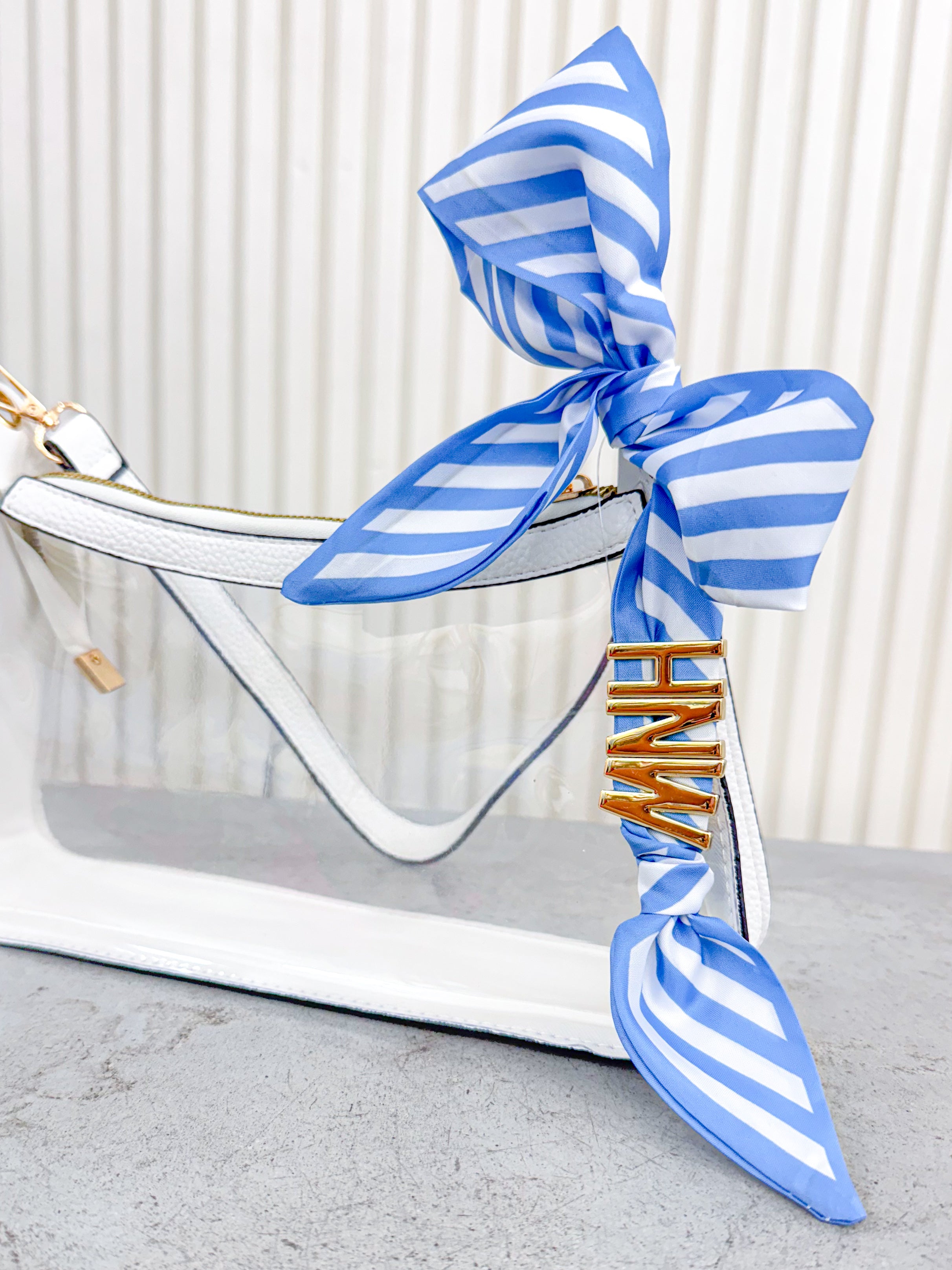 Add a splash of fun to any outfit with this blue and white striped scarf. Lightweight and versatile, it’s perfect for tying, draping, or wrapping in countless stylish ways. Whether you’re dressing up or keeping it casual, this scarf brings a playful pop of color and pattern to your look.
