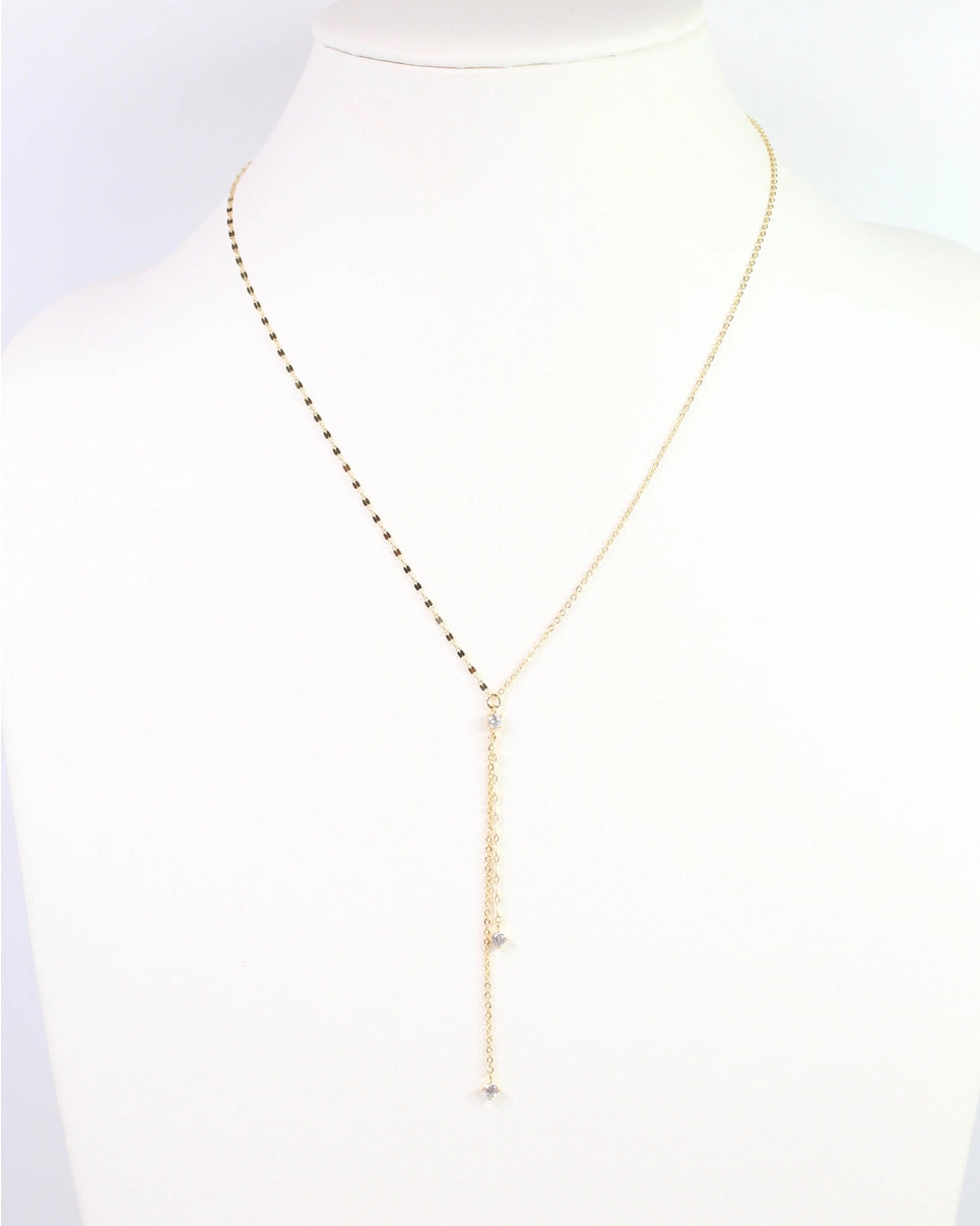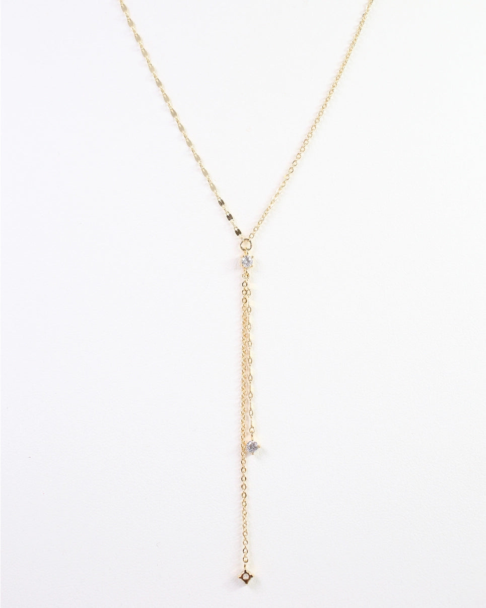 Elevate your look with the Catherine CZ Delicate Y Necklace Gold. This charm drapes effortlessly with a V-neck or tank, adding just the right touch of sparkle. Featuring two petite crystal drops, it’s the perfect playful accent to brighten any outfit.