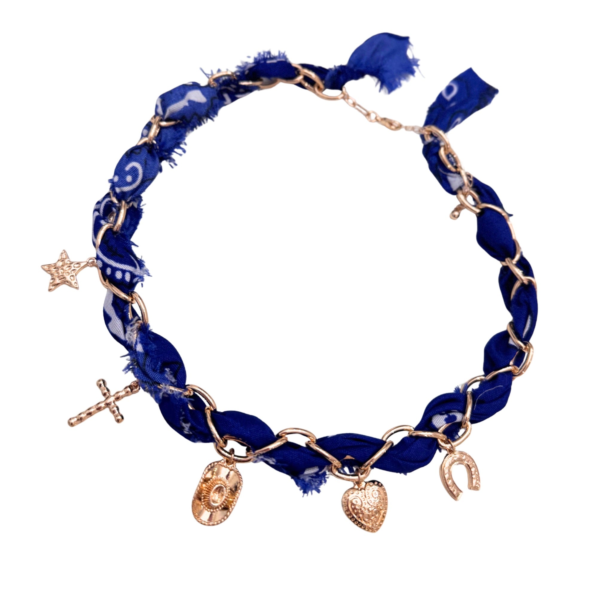 Elevate your outfit with this bandana necklace with charms—a unique piece that blends fashion and flair.