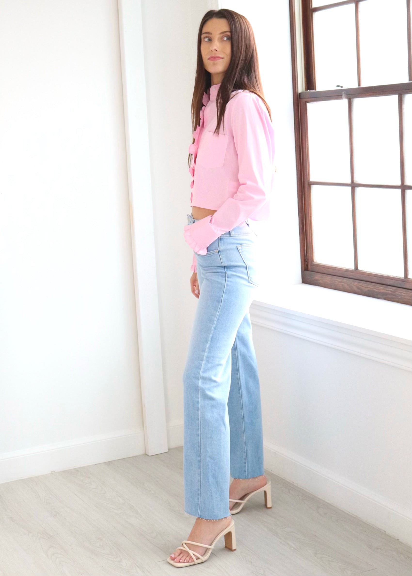 Get ready to elevate your denim game with the Letter To Juliet Paola A-Line Scissor Hem Wide Leg Jean! This light wash, effortlessly chic option will take your wardrobe to the next level. Say goodbye to boring, basic jeans and hello to stylish and comfortable fashion!