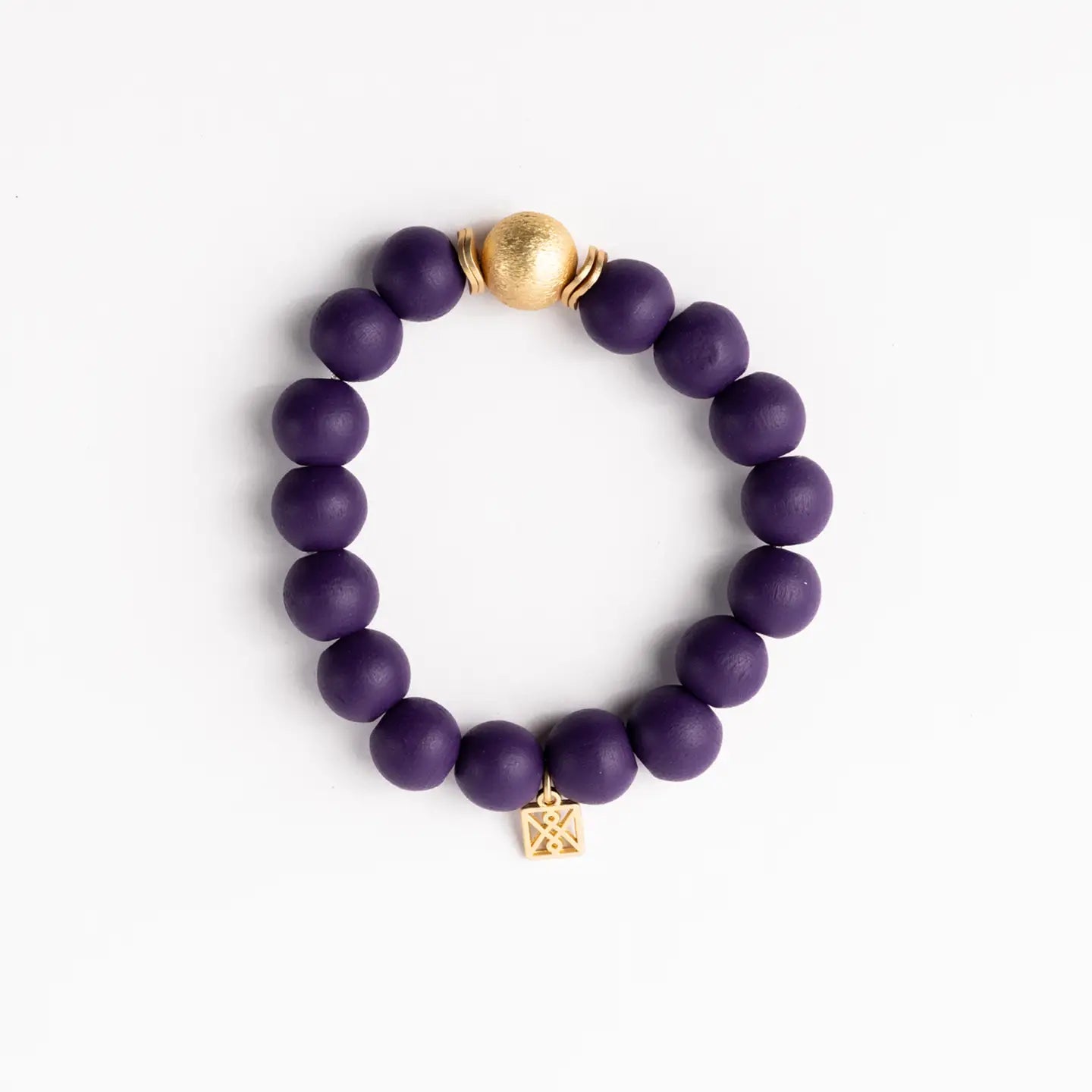 Purple painted wood beaded bracelet