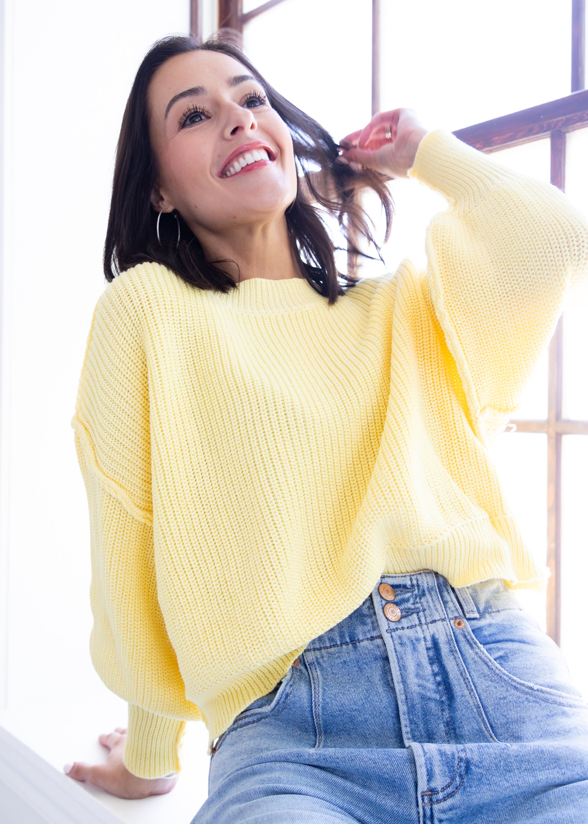 Brighten your wardrobe with the Sunshine Sweater, the perfect pick in this season’s must-have yellow. Cozy and cheerful, it adds a splash of sunshine to any day, making chilly moments warm and stylish. Embrace the playful vibe and let this sweater be your go-to for vibrant comfort.