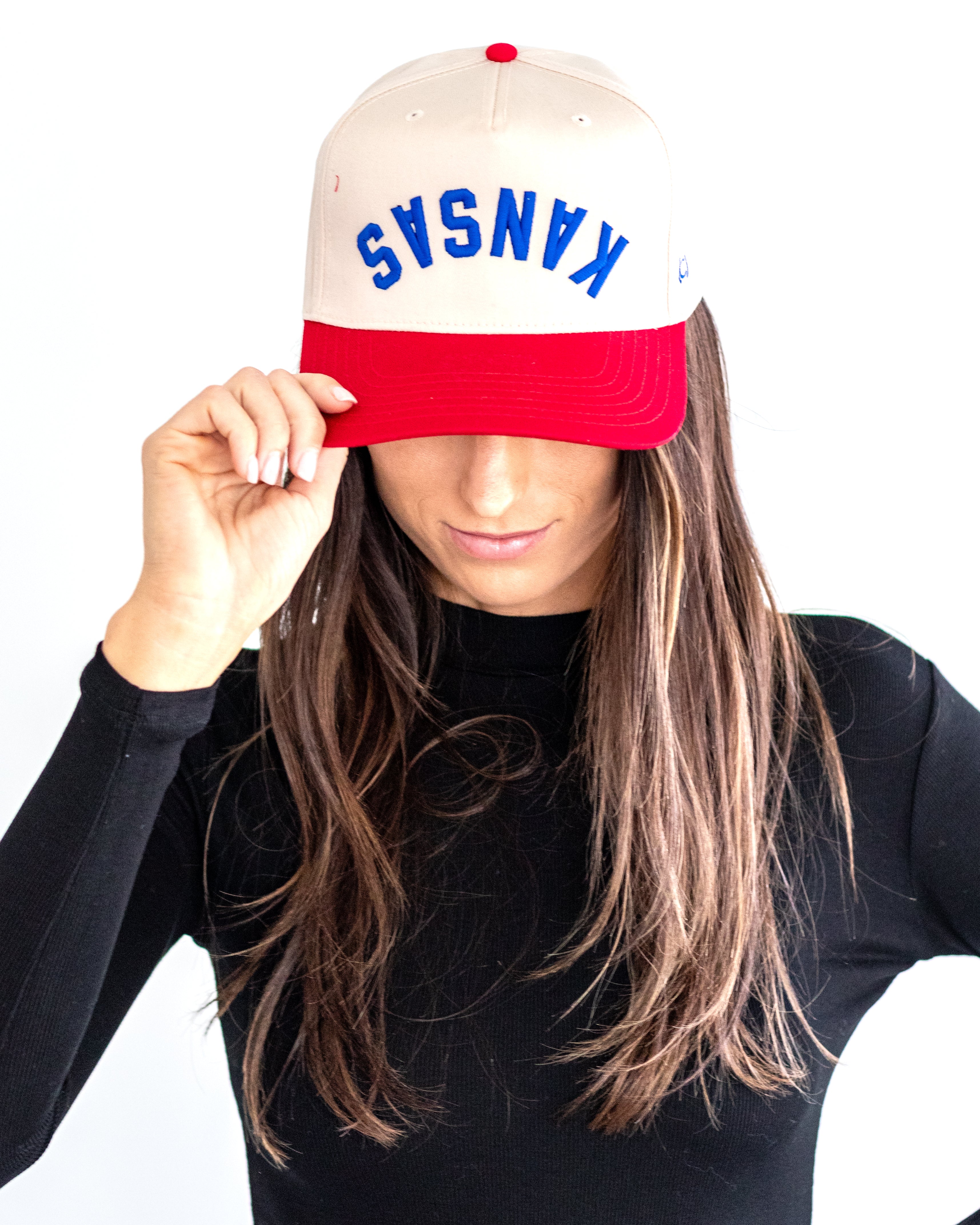 Enhance your style with our Upside Down Trucker Hat - Kansas! This vintage trucker hat features a bold blue "Kansas" embroidery upside down for a unique twist. Stay cool and trendy while representing your favorite state!